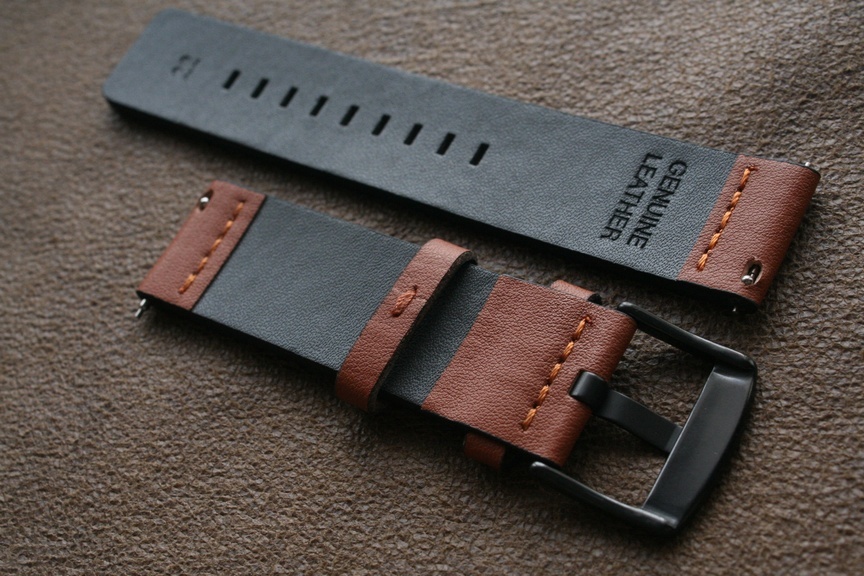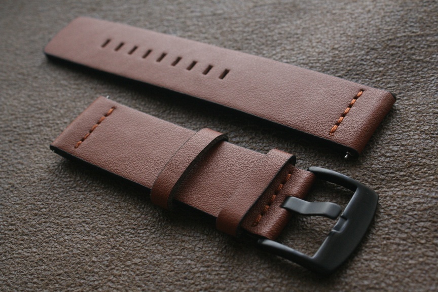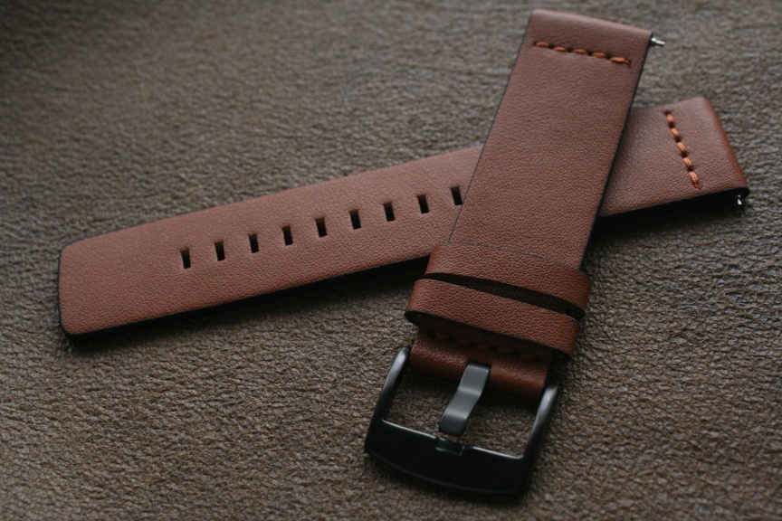 肉厚でかつ、バックルも大型のもので、スポーツウオッチやダイバー系に特に好適です。