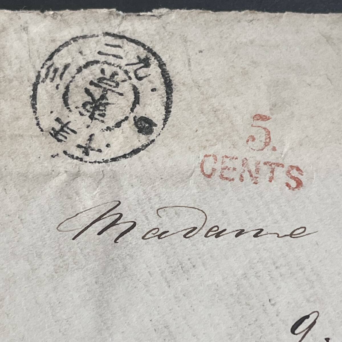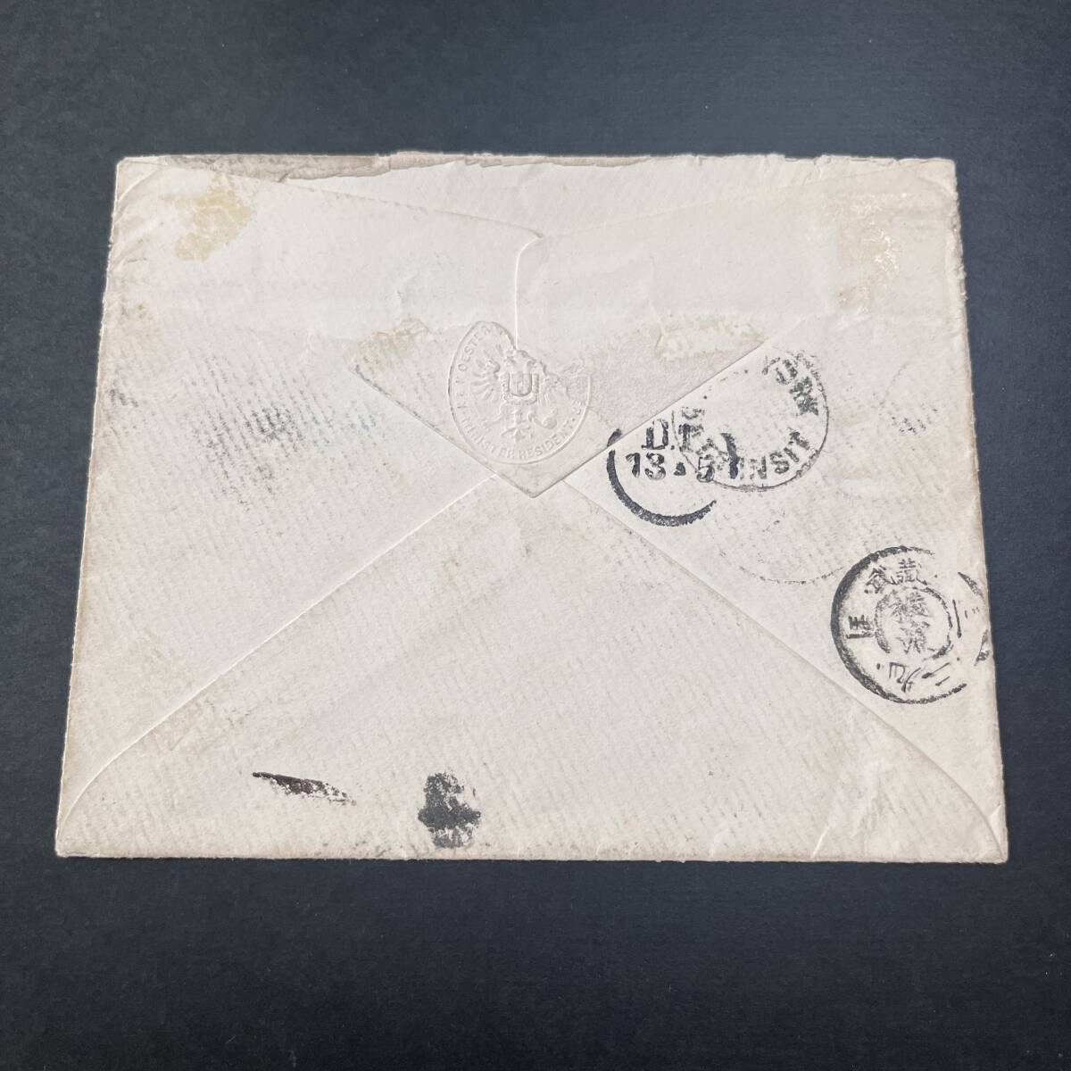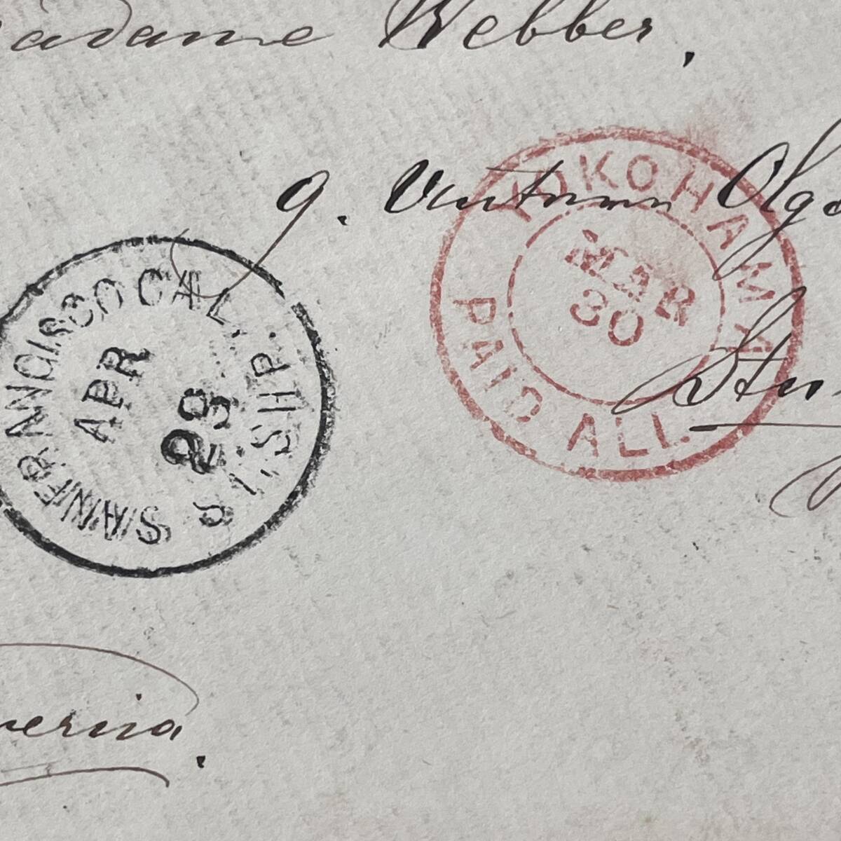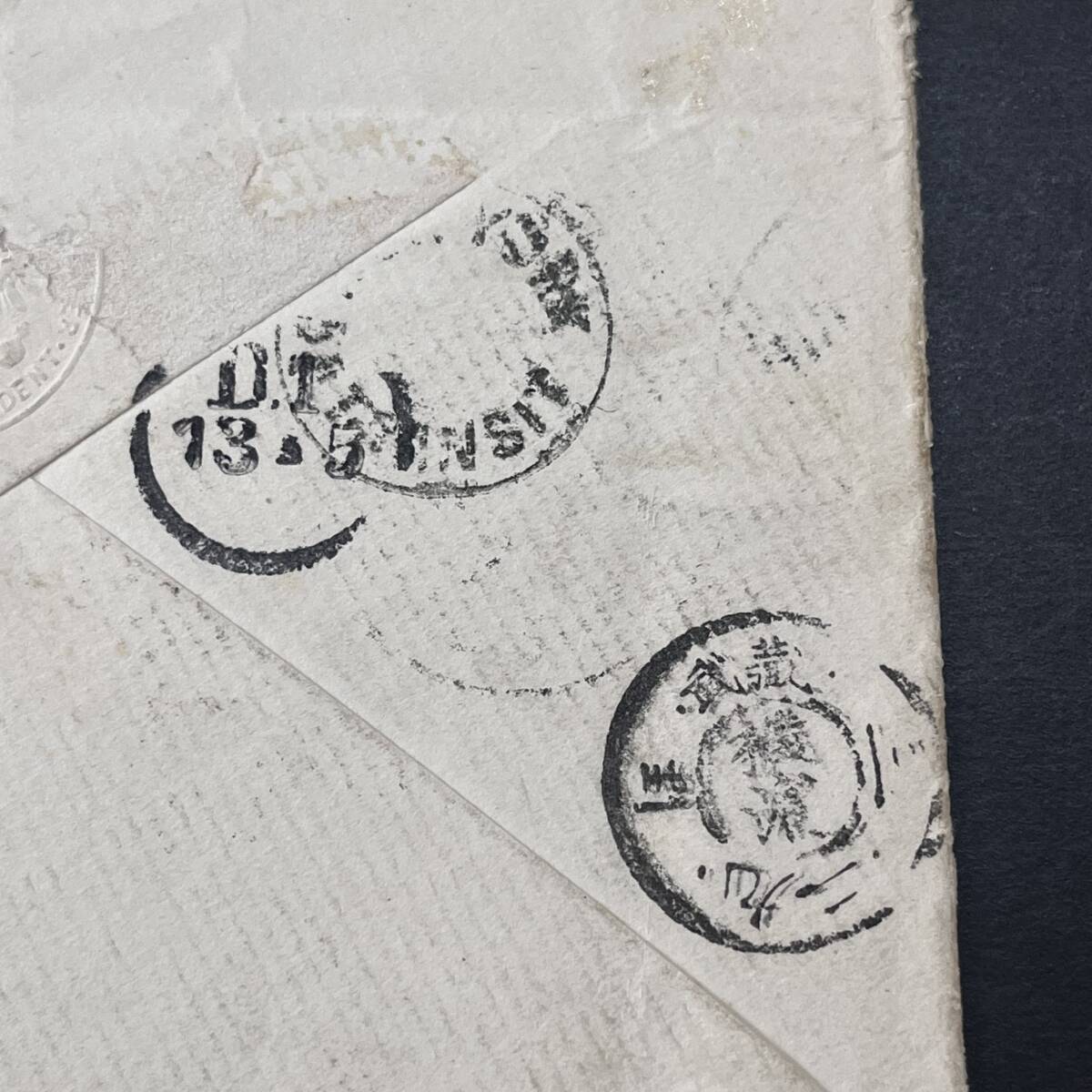 【1877年 手彫桜切手貼外信書状】改色桜10銭単貼 米国経由ドイツ宛書状 白抜十字印抹消 YOKOHAMA PAID ALL印 評価120,000円 エンタイア