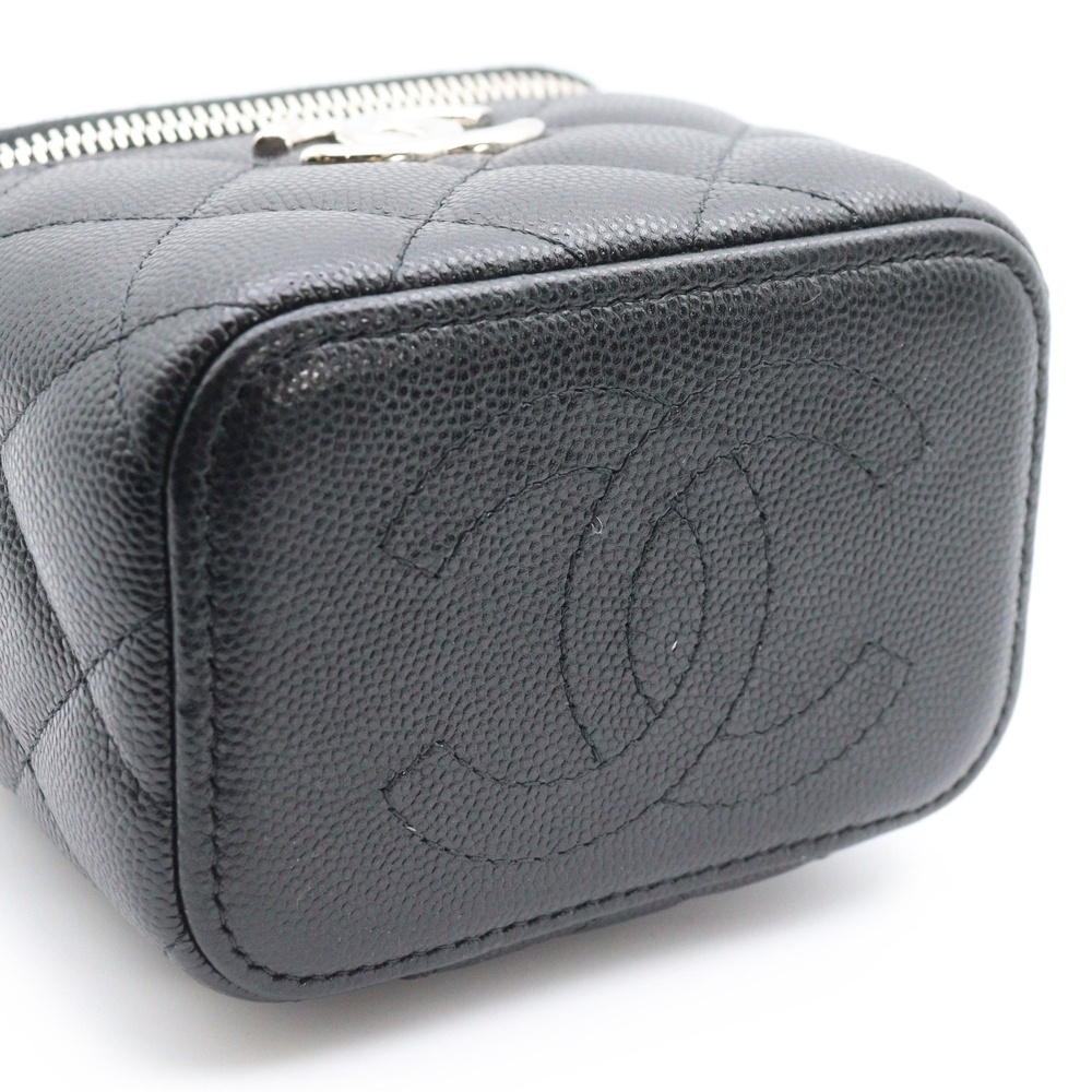CHANEL シャネル ミニバニティ チェーンショルダーバッグ ブラック キャビアスキン シルバー金具 AP2718