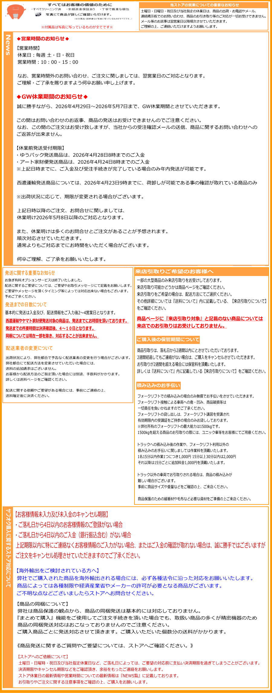 その際にはお客様に非常に悪い評価がつきますのでご了承ください。