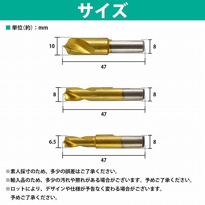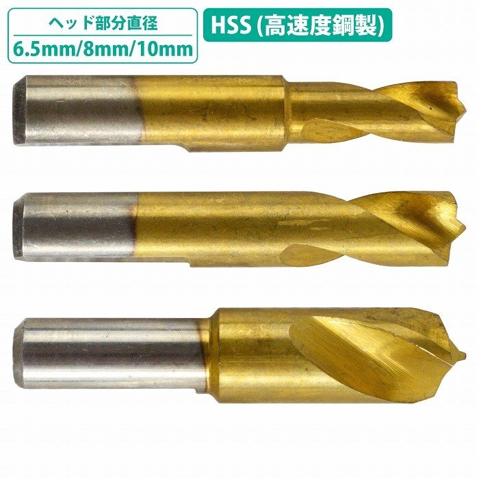 3本セット スポット溶接 カッター 6.5mm 8mm 10mm 3種 3個 HSS 溶接 ドリルビット 鈑金 塗装 修理 工具 ドリル 刃 高速度鋼製