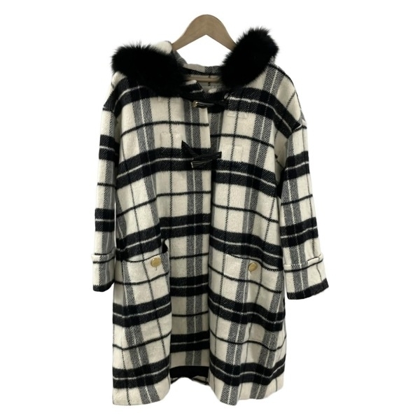 グレースクラス Grace Class ダッフルコート サイズ36 S - 白×黒 レディース 長袖/フォックスファー/チェック柄/秋/冬 美品 コート