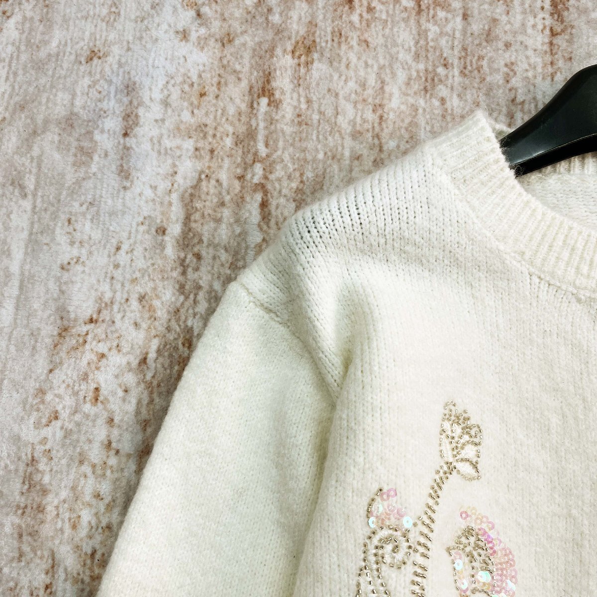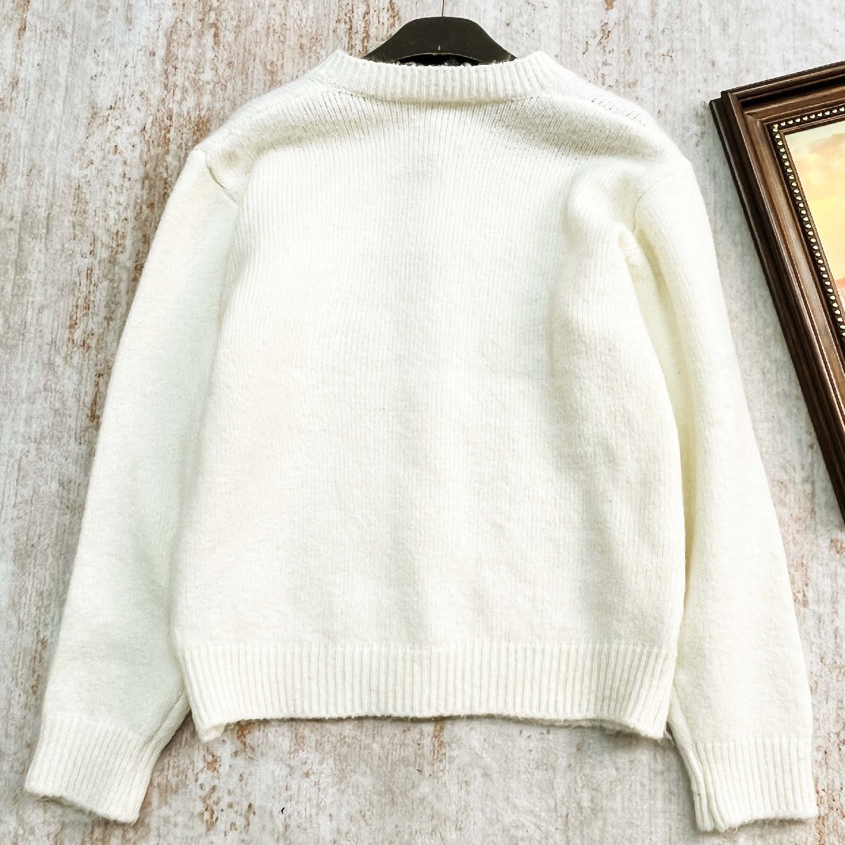 シンプルなクルーネックデザインは飽きが来ず、アクセサリーや小物と組み合わせて様々なコーディネートを楽しめます。フロントには丁寧に施された個性的な柄が高級感と上品さを演出し、大人可愛い印象に。袖口と裾はリブ仕様で、見た目もすっきり整います。