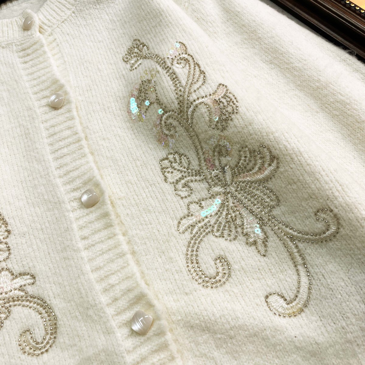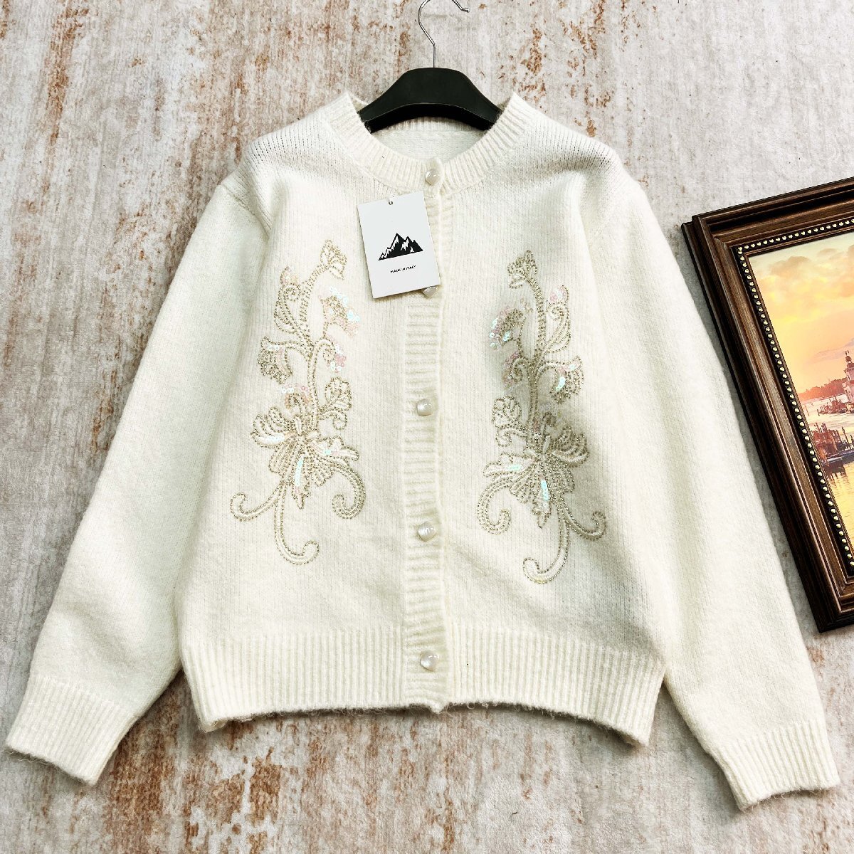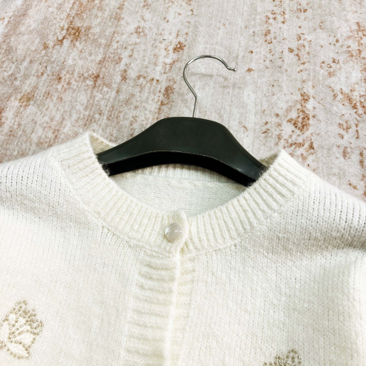 暖かい カーディガン イタリア製造 高級ウール混 軽量 キラキラ キレイめ 可愛い セーター ニット ジャケット デート レディース SIZE:L