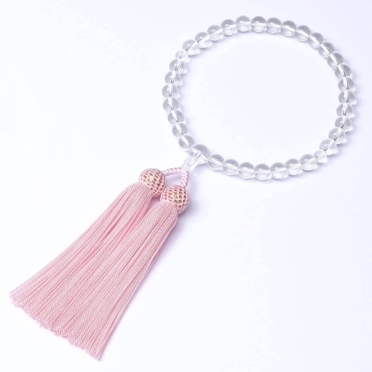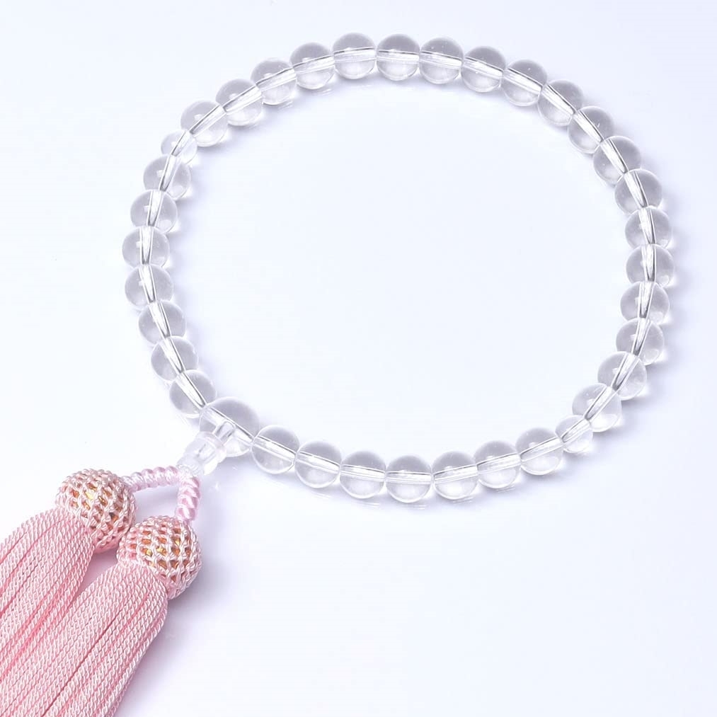 エレガントな水晶を使用しており、とても女性らしくて綺麗な念珠です。仕上げもちゃんとしていて、手触りがとても良いです。お値段から見えない高級感があり、上品な雰囲気を演出してくれます。