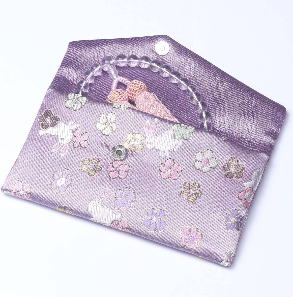 【D-1】女性用数珠 数珠袋付き 本水晶 念珠 じゅず 葬儀 墓参り 法事 念誦 冠婚葬祭 クリスタル うさぎ 葬式 御念珠入れ