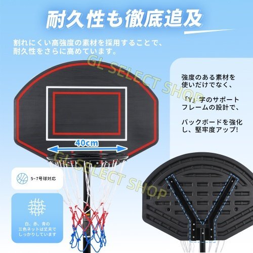 バスケットゴール 高さ6段階調節 移動式 自立式 室外 安定性高い 組み立て簡単 大人 子供 こども用 ミニバス 工具付き キャスター付き