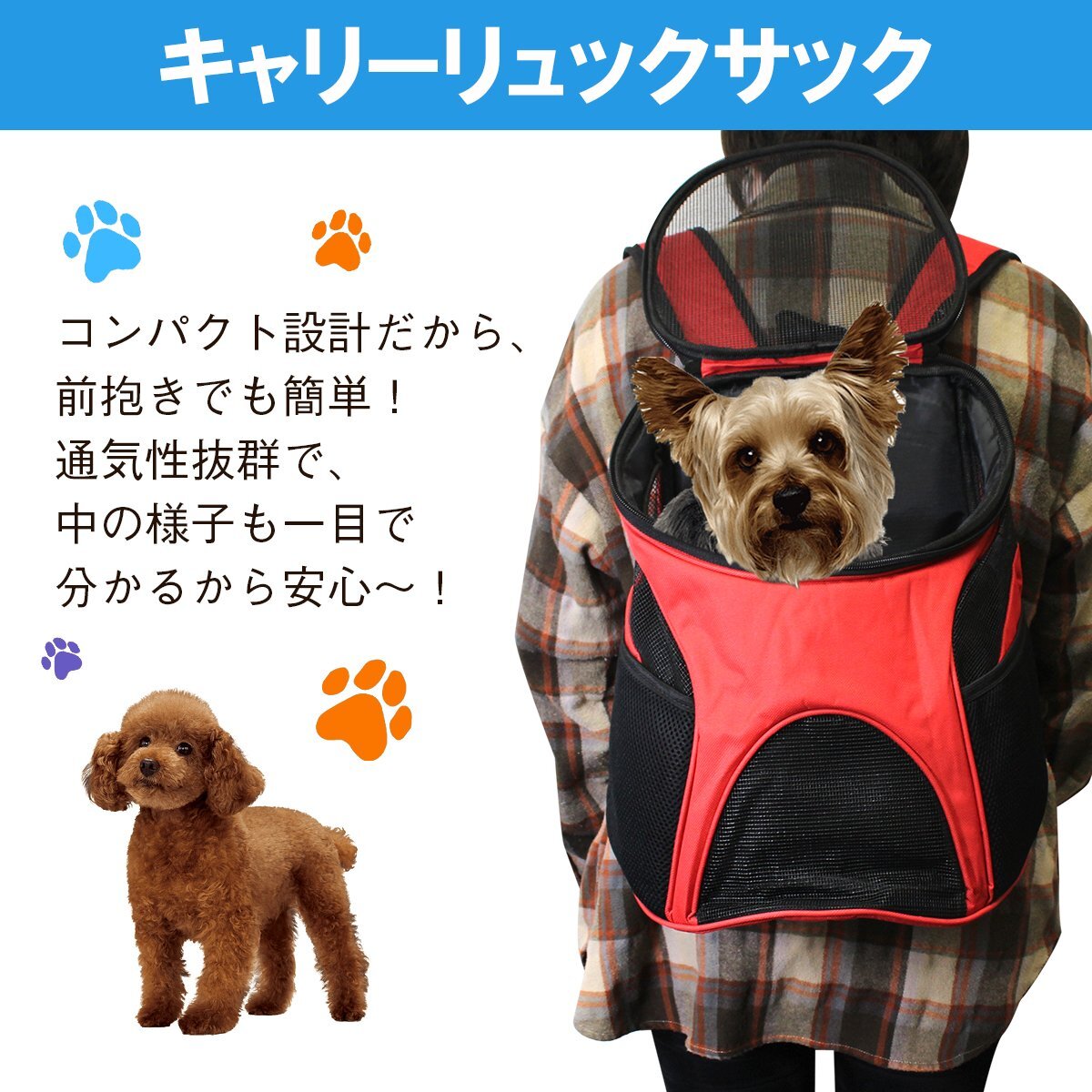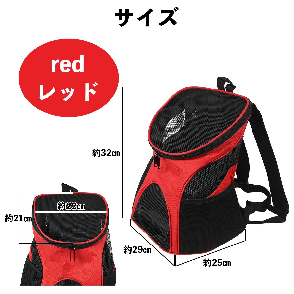 キャリーバッグ 人気のリュック型♪ メッシュ素材 ペットバッグ 耐荷2.5kg 小型犬/猫用 レッド 赤 ペットキャリー お散歩 お出かけ 災害