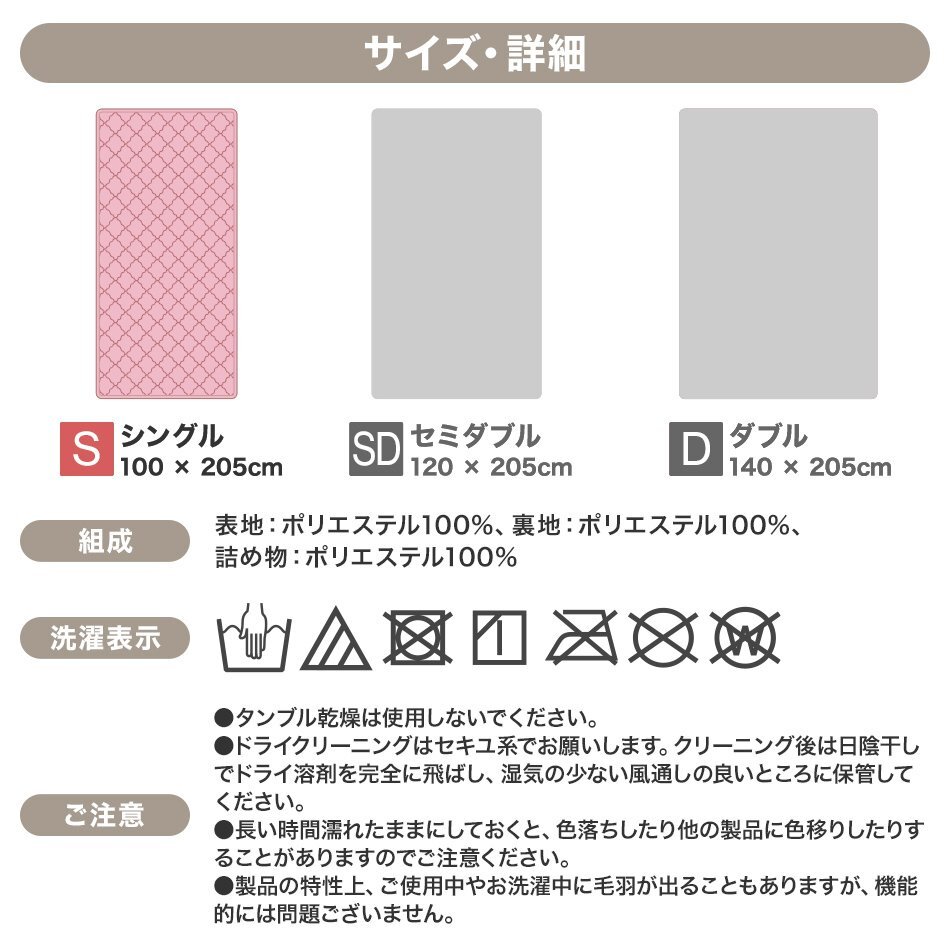 | さわり心地抜群!シルキータッチの優しい肌触り +2℃のあたたかさ! 身体から発散される水分を熱に変える吸湿発熱繊維"F-Tech"を使用。 抗菌防臭効果のあるフランネル生地を含む3層構造でしっかり保温! また、丸洗いOKなのでいつでも清潔です。 今年の冬はあったか敷パッドでぐっすり寝ましょう!! 【商品内容】 敷きパッド×1 【商品詳細】 サイズ:シングル (約)100×205cm カラー:モカベージュ ▼ FEF006 あったか敷パッド カラー一覧 ▼ FEF006BR あったか敷パッド S モカベージュ FEF006PK あったか敷パッド S スモーキーピンク ▼セットでオススメ あったかブランケット毛布(S)▼ FEF003 あったかブランケット S 【注意事項】 ・タンブル乾燥は使用しないでください。 ・ドライクリーニングはセキユ系でお願いします。クリーニング後は日陰干しでドライ溶剤を完全に飛ばし、湿気の少ない風通しの良いところに保管してください。 ・長い時間濡れたままにしておくと、色落ちしたり他の製品に色移りしたりすることがありますのでご注意ください。 ・製品の特性上、ご使用中やお洗濯中に羽毛が出る事もありますが、機能的には問題ございません。 ・商品は、モニターによって色合いが異なって見える場合があります。 |