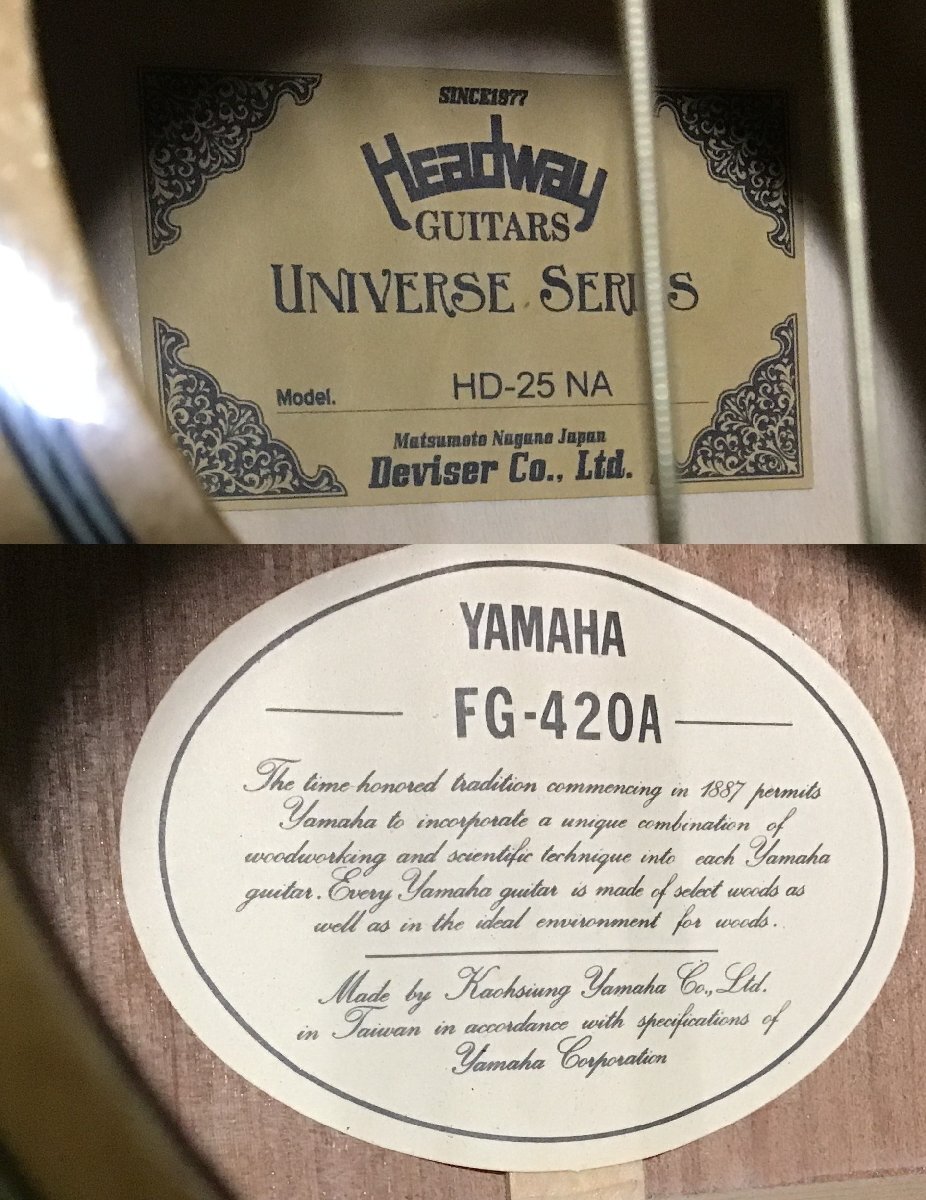 管理番号Ec9643【中古】Headway HD-25 NA & YAMAHA FG-420A ヘッドウェイ ヤマハ アコギ 2本SET ノーメンテ 現状渡し