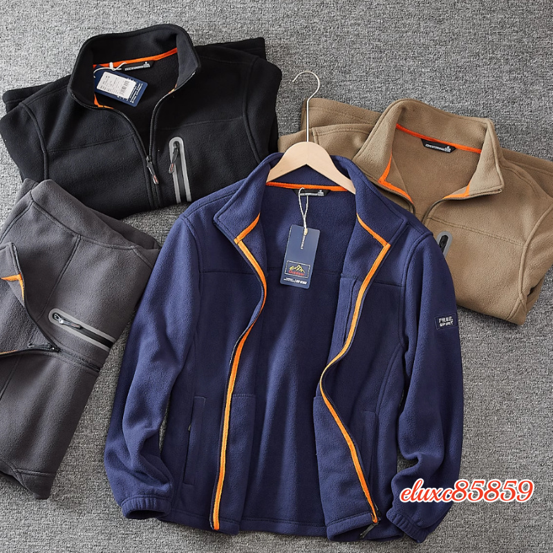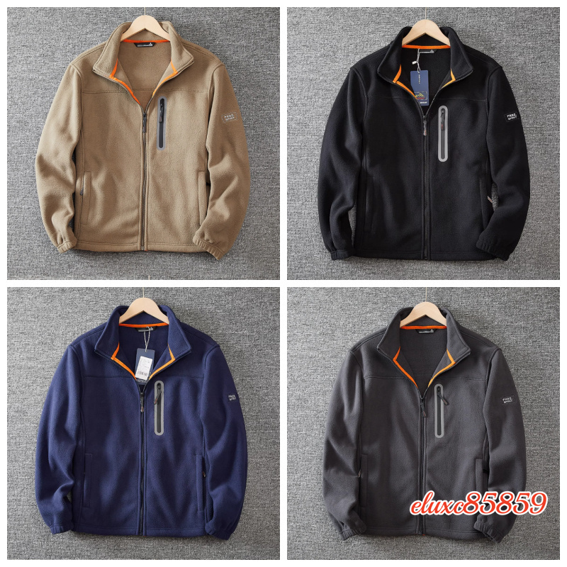 新品 メンズ フリース ジャケット スタンドカラー アウトドア 防寒 秋冬 おしゃれ 軽量 厚手 立襟 ジップアップ ネイビー サイズ選択可M