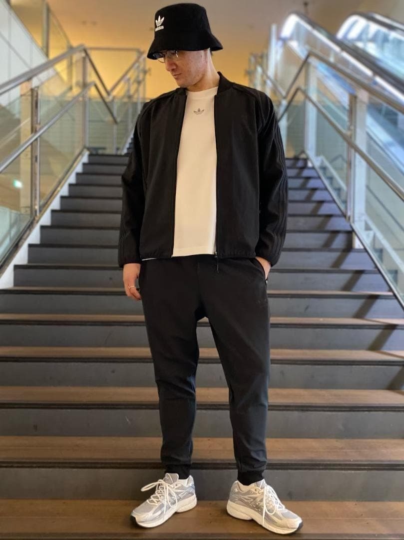 ・全体をブラックであしらったシックで都会的な印象なトラックジャケット