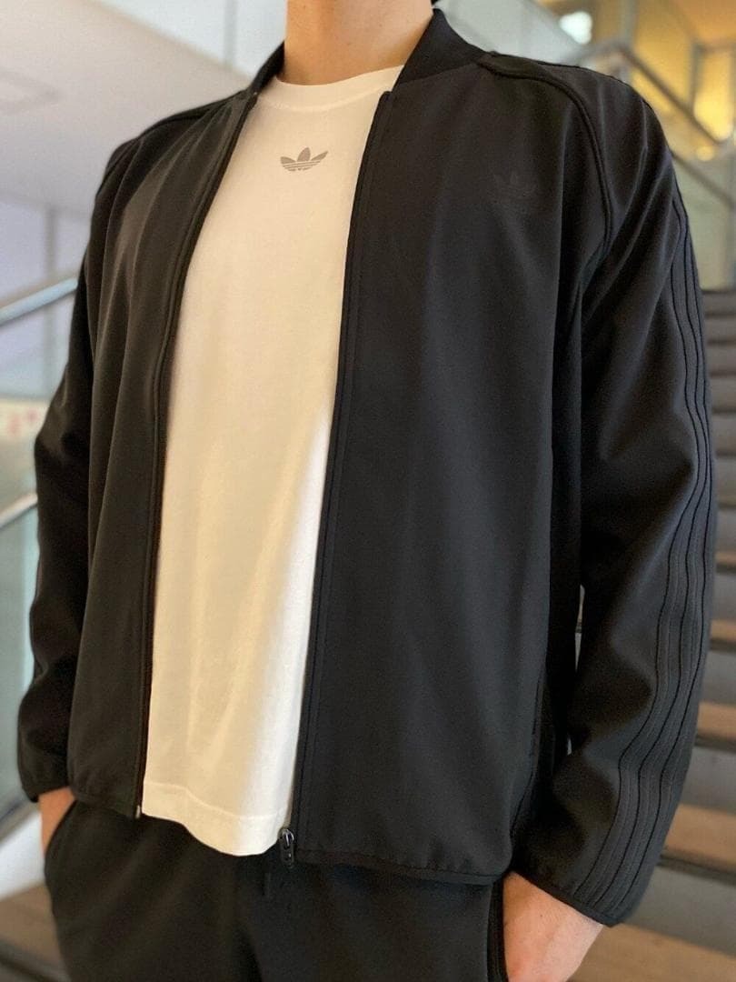アディダスを象徴する名作ジャージ「Super Star Track Top(スーパースター・トラックトップ)」を、テックフリース調のマテリアル×シックなオールブラックカラーで再構築したモダンな一枚!