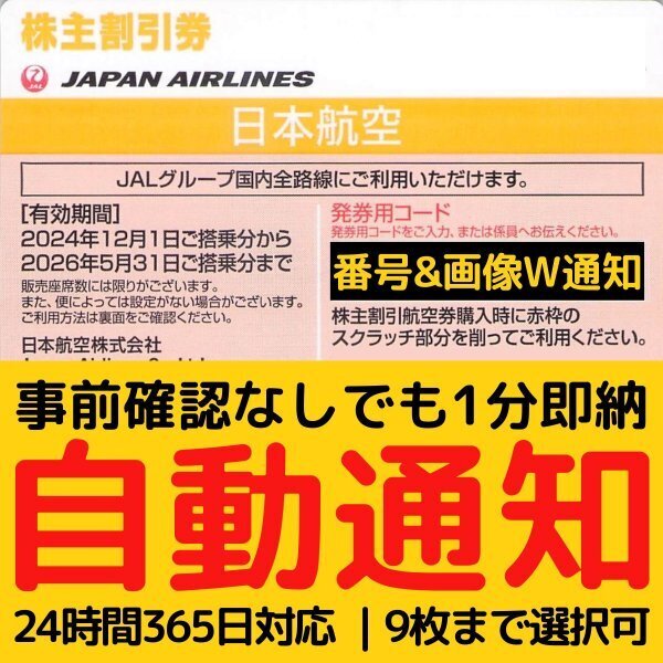 1分自動通知 24時間対応 コード&画像W通知 JAL 株主優待券 1枚〜9枚 26年5月末 発送不可 2枚3枚4枚5枚6枚7枚8枚 日本航空 JL51