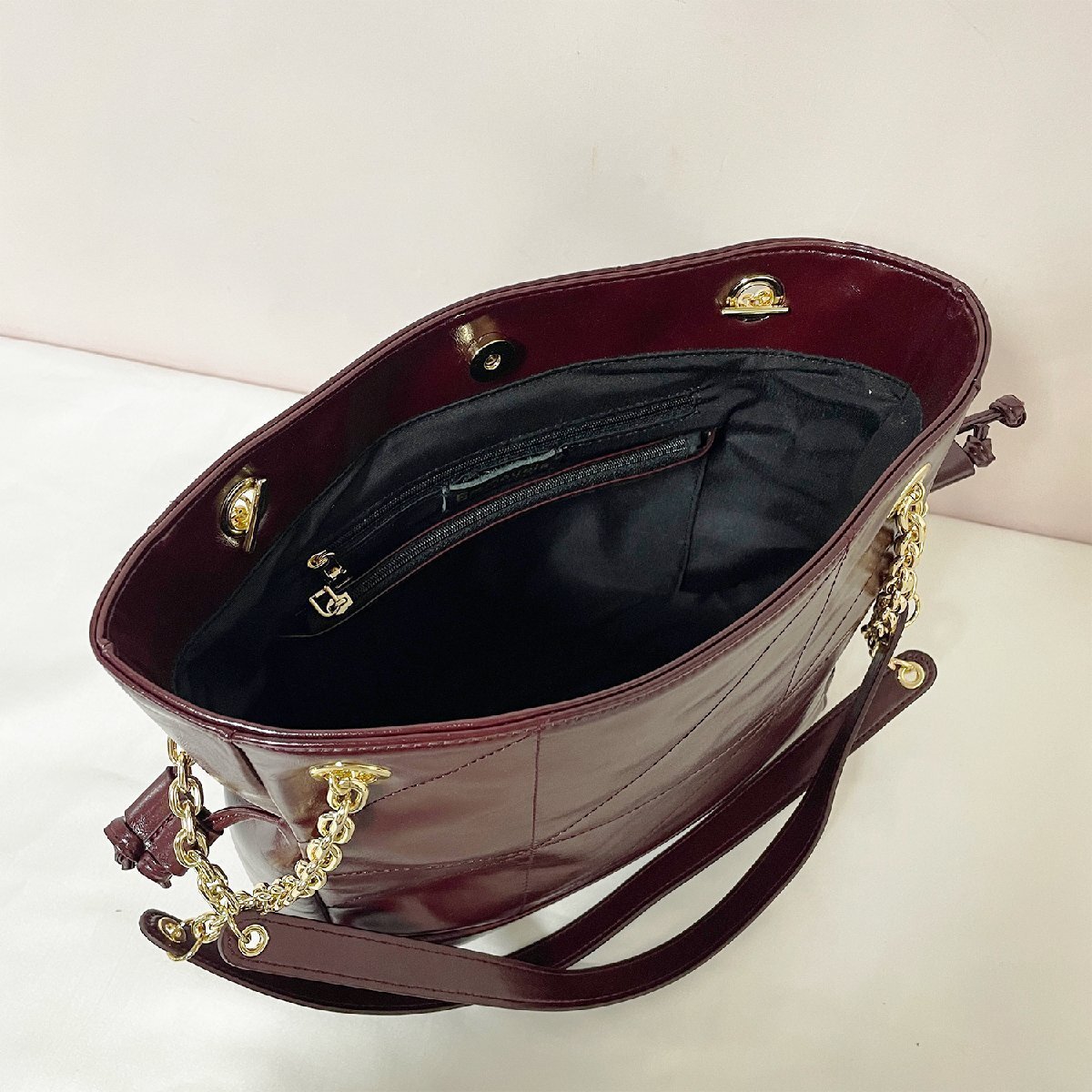 無駄な装飾のないシンプルなデザインながら、存在感のあります。クラシカルなムード漂い、オンオフ兼用でご活躍いただける実力派バッグです!内側にはオープンポケットとファスナーポケットがあり、お財布やスマートフォン、ティッシュや鍵など、毎日の必需品がしっかり収納できます。さらに、表面に撥水加工が施され、軽い雨の日でも快適に使えます。