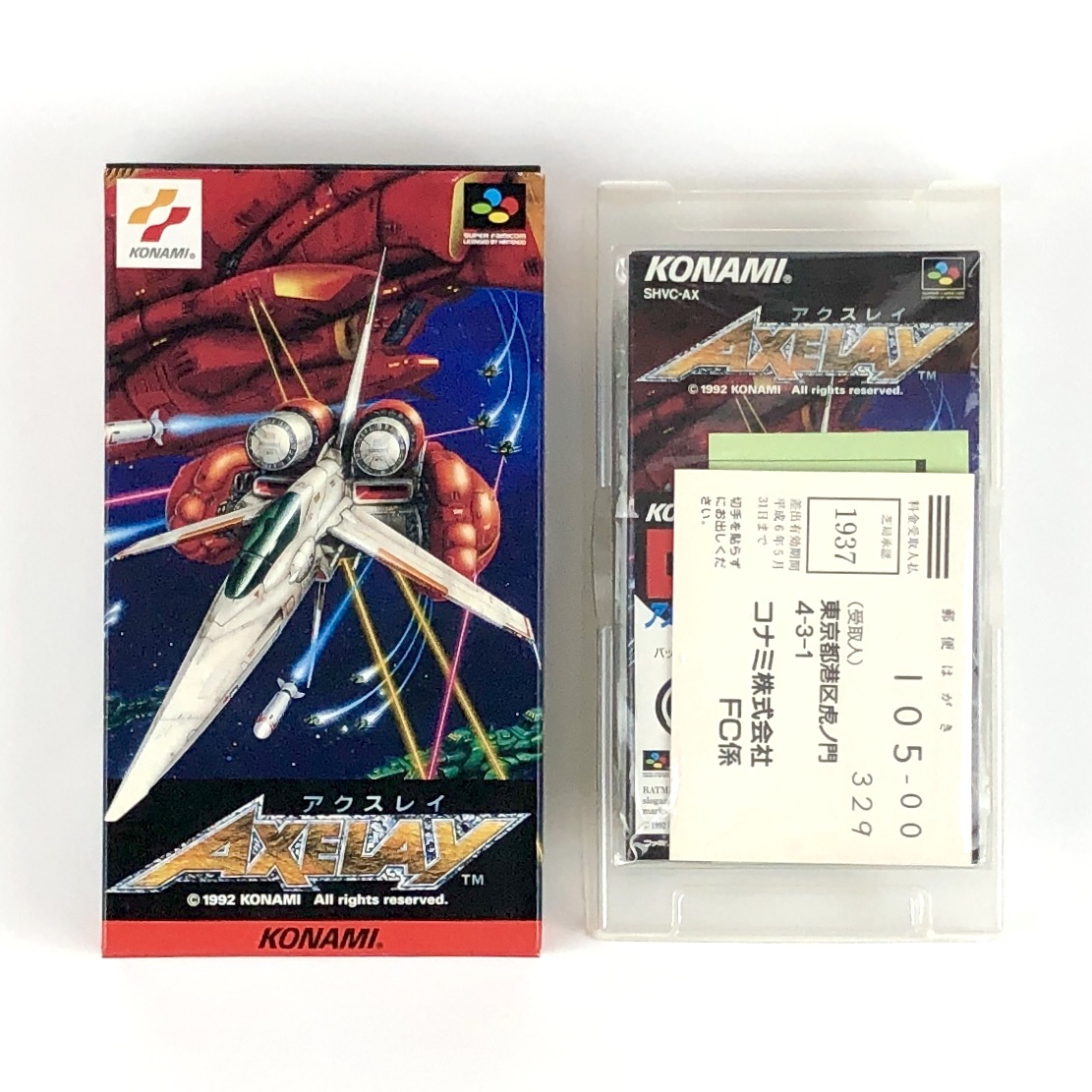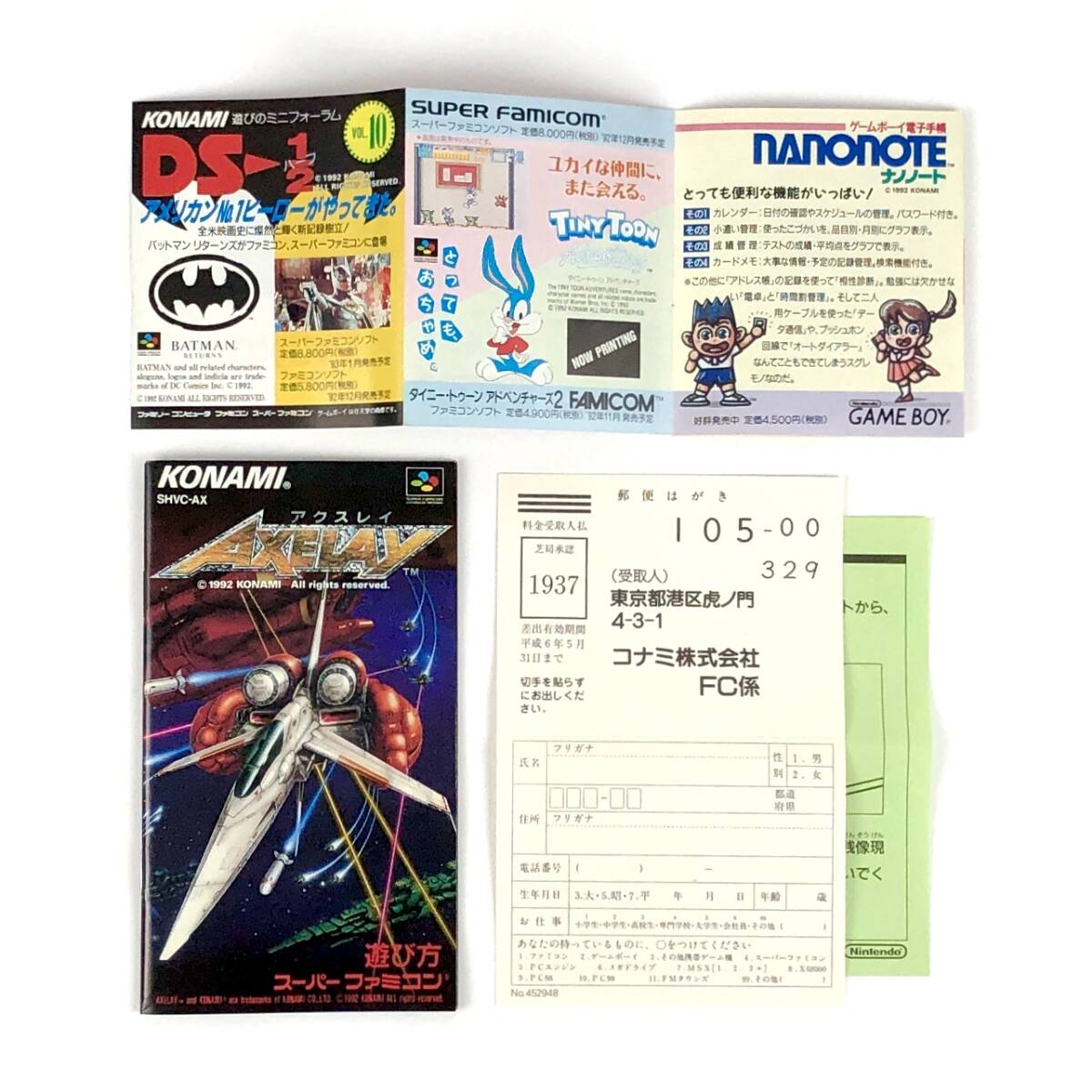 スーパーファミコン アクスレイ 箱説・チラシ・ハガキ付き 動作確認済み コナミ Super Famicom AXELAY CIB Tested Konami