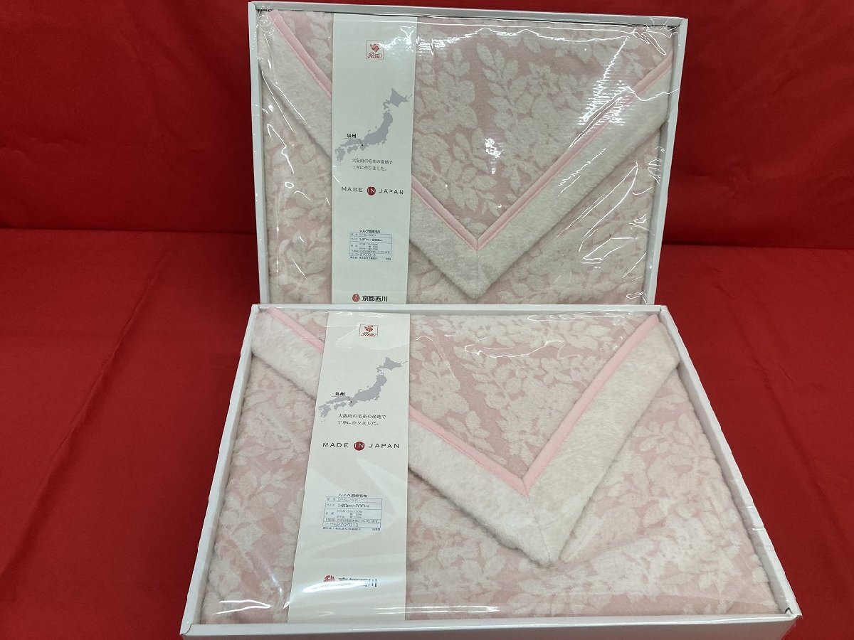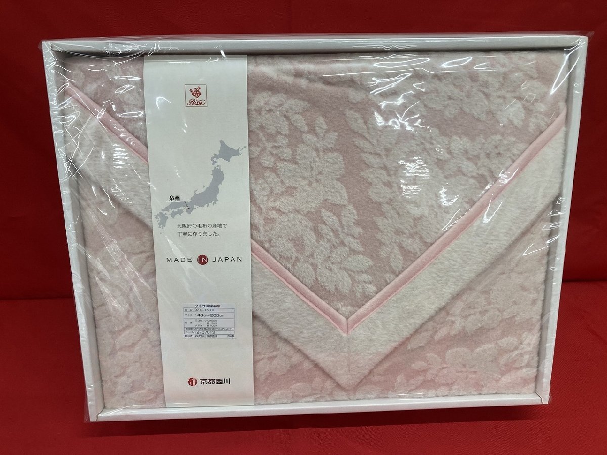 ★ AT【送料無料】京都西川 寝具 シルク混綿毛布 毛布 花柄 ピンク シングル 2点セット プレセント 贈物 未使用品