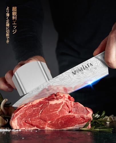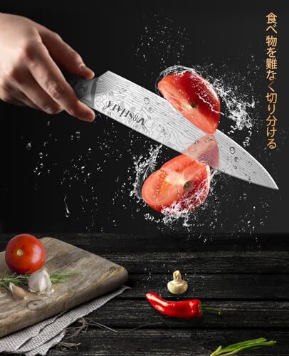 【高品質鋼超鋭利】すべての刃は、ハイテク真空熱処理高鋼で作られており、シェフナイフの強い強度、柔軟性、耐久性と性能を確保します。同時に非常に高い切れ味、長期耐久性とナイフ保持能力を提供します。ロッシュ硬度58-60です。片面13~15°を手動でカットします