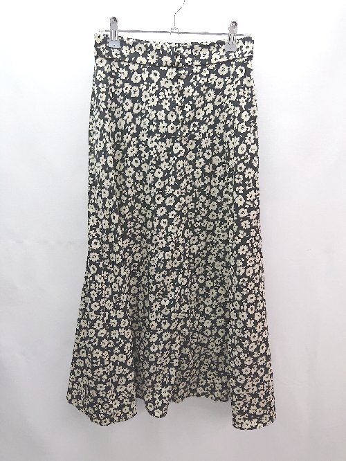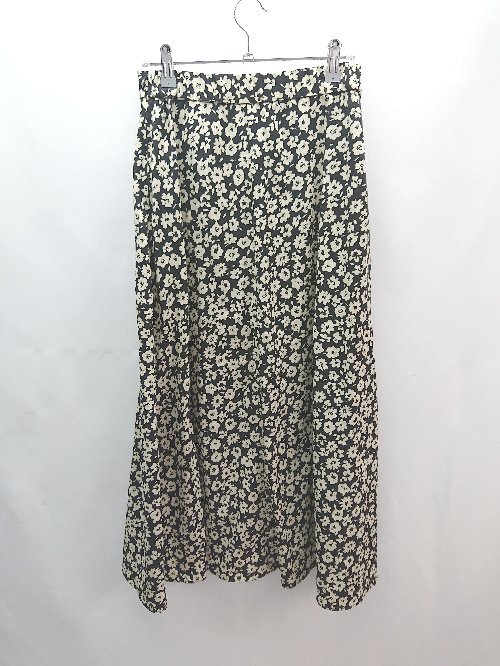 ◇ LOWRYS FARM サイドジップ ウエストゴム 花柄 裏地 ロング丈 フレア スカート サイズF クリーム系 レディース E