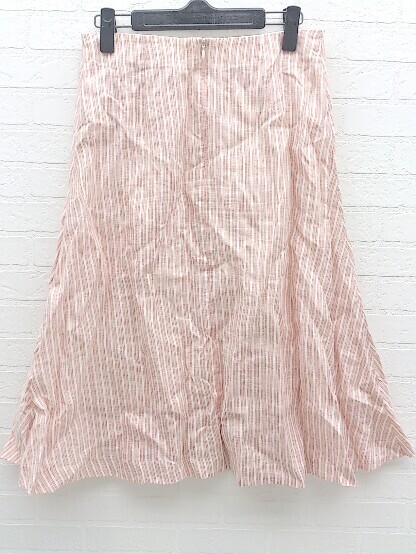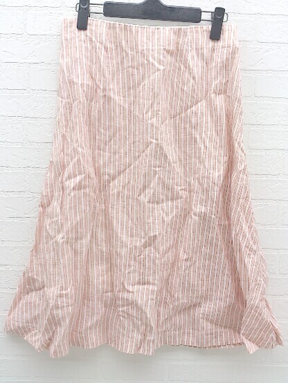◇ Mila Owen ミラ オーウェン リネン100% 総柄 膝下丈 フレア スカート サイズ1 レッド ベージュ ホワイト レディース