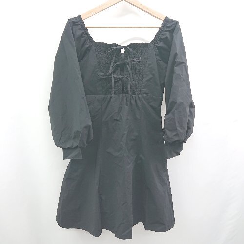 ◇ ⊂ one after another NICE CLAUP 長袖 ミニ ワンピース サイズF ブラック レディース E