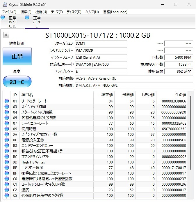 ハードディスク 2.5 SerialATA HDD 1TB 状態正常 4台セット 管8