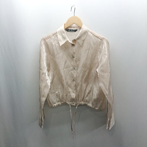 ◇ ⊂ Φ ZARA ザラ 光沢 長袖 シアーシャツ サイズM ベージュ系 レディース E