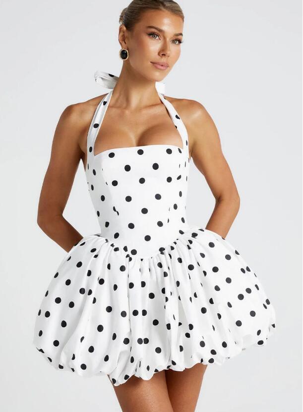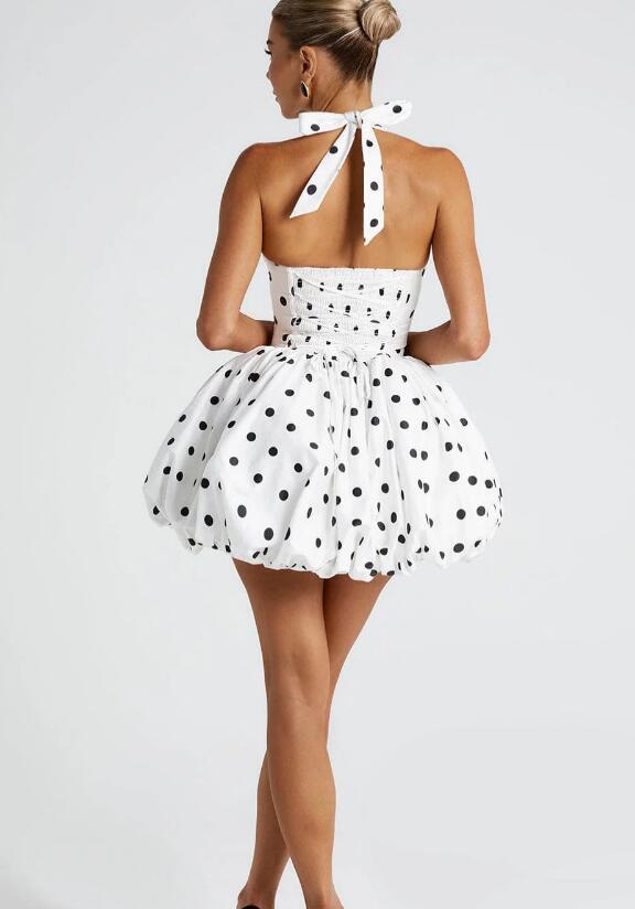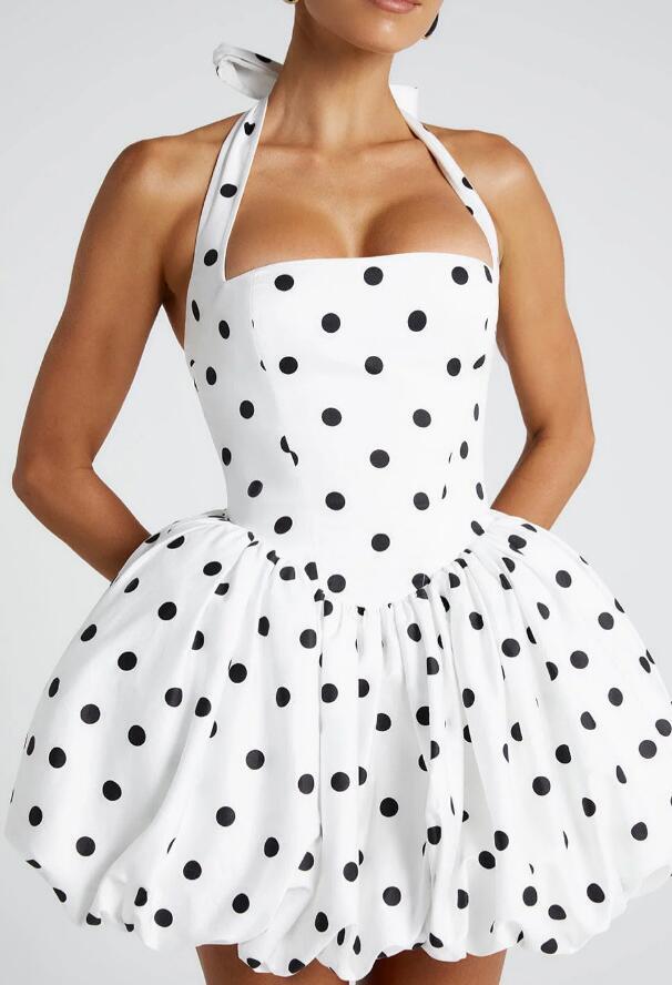405 ワンピースladiesレディース ◇ 綺麗めシルエット ◇ 素敵   ホルターネック  ドレス   ドット