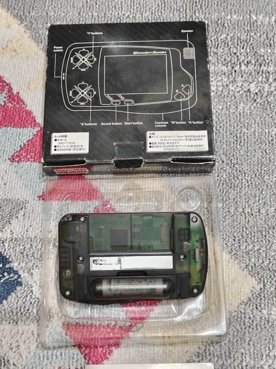 | 商品説明 | WonderSwan ワンダースワン スケルトンブラック 箱、取説あり 現状品 電源のみ確認です。 ソフトが無いため、電源がはいることのみ 確認できています。 液晶面はヤケがみられます。 破損等はありません。 |