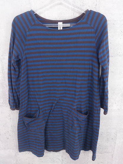 ◇ nouvelles du paradis ボーダー 膝丈 ワンピース ネイビー ブラウン レディース 【中古】