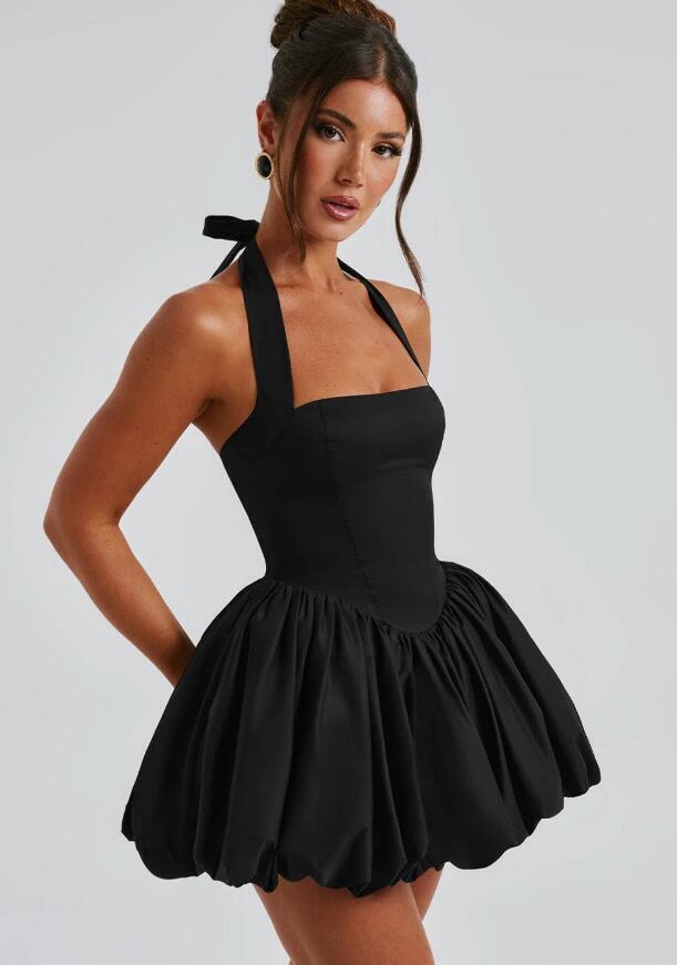405 ワンピースladiesレディース ◇ 綺麗めシルエット ◇ 素敵   ホルターネック  ドレス   ブラック