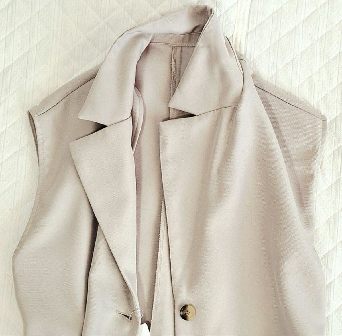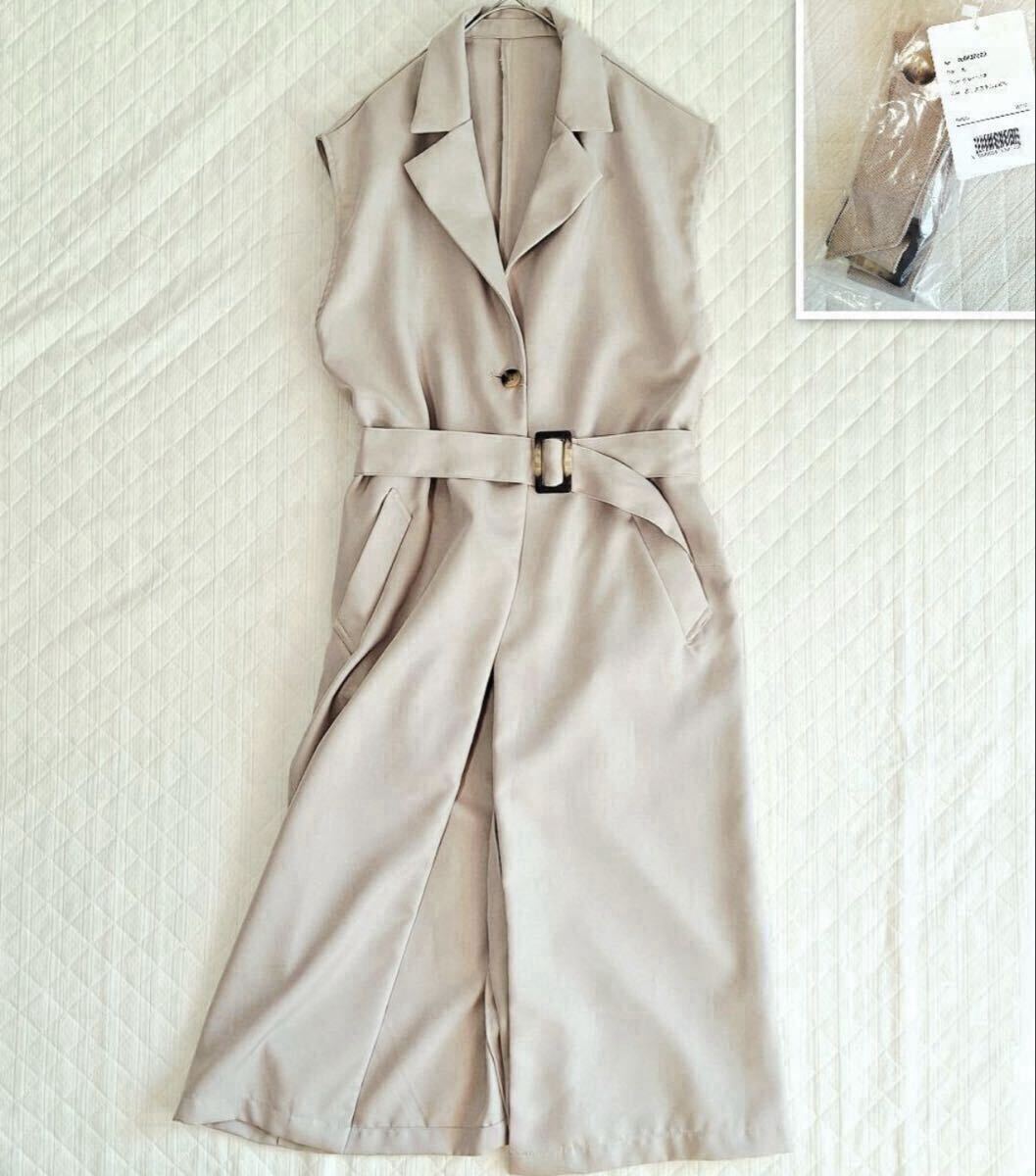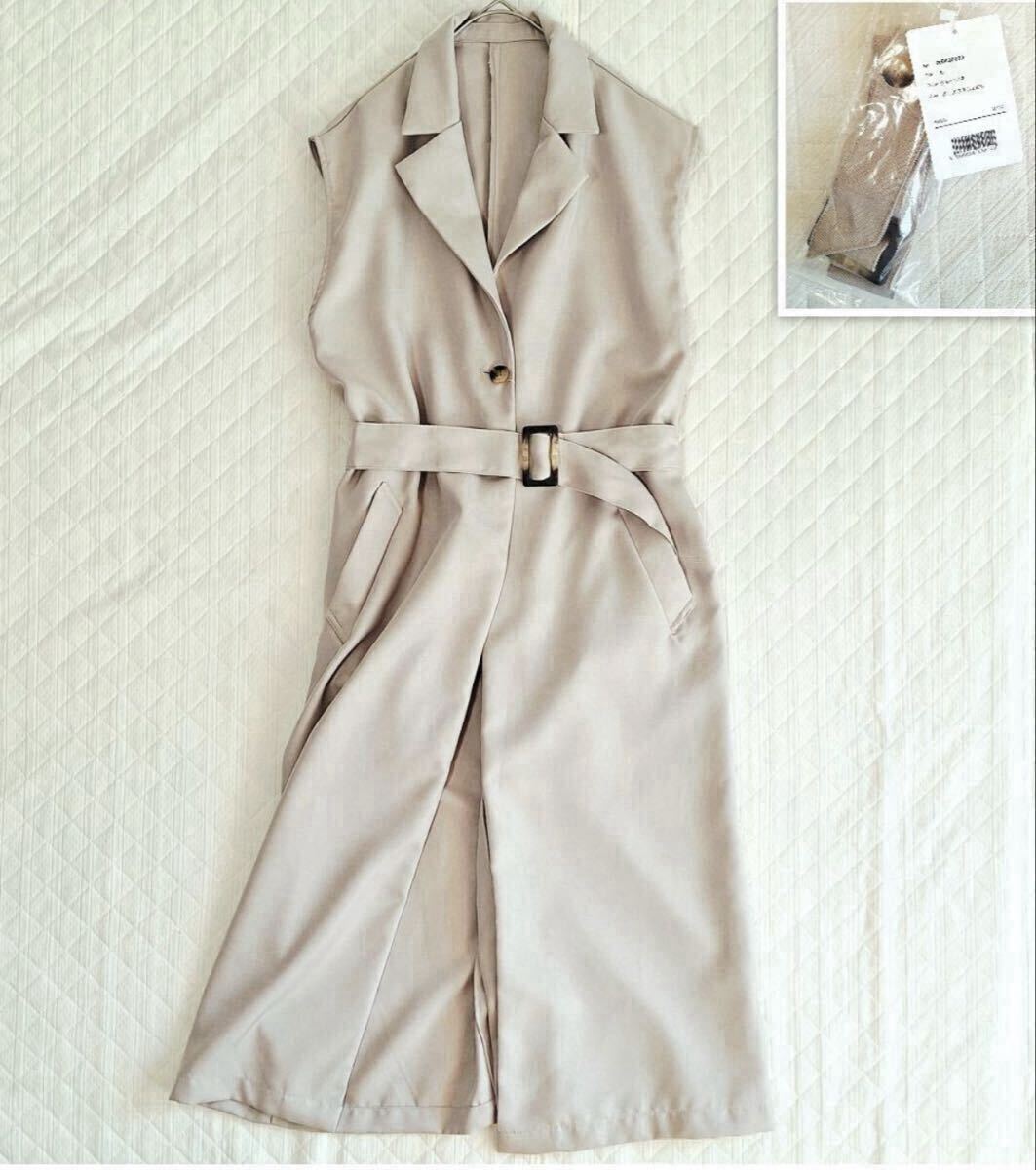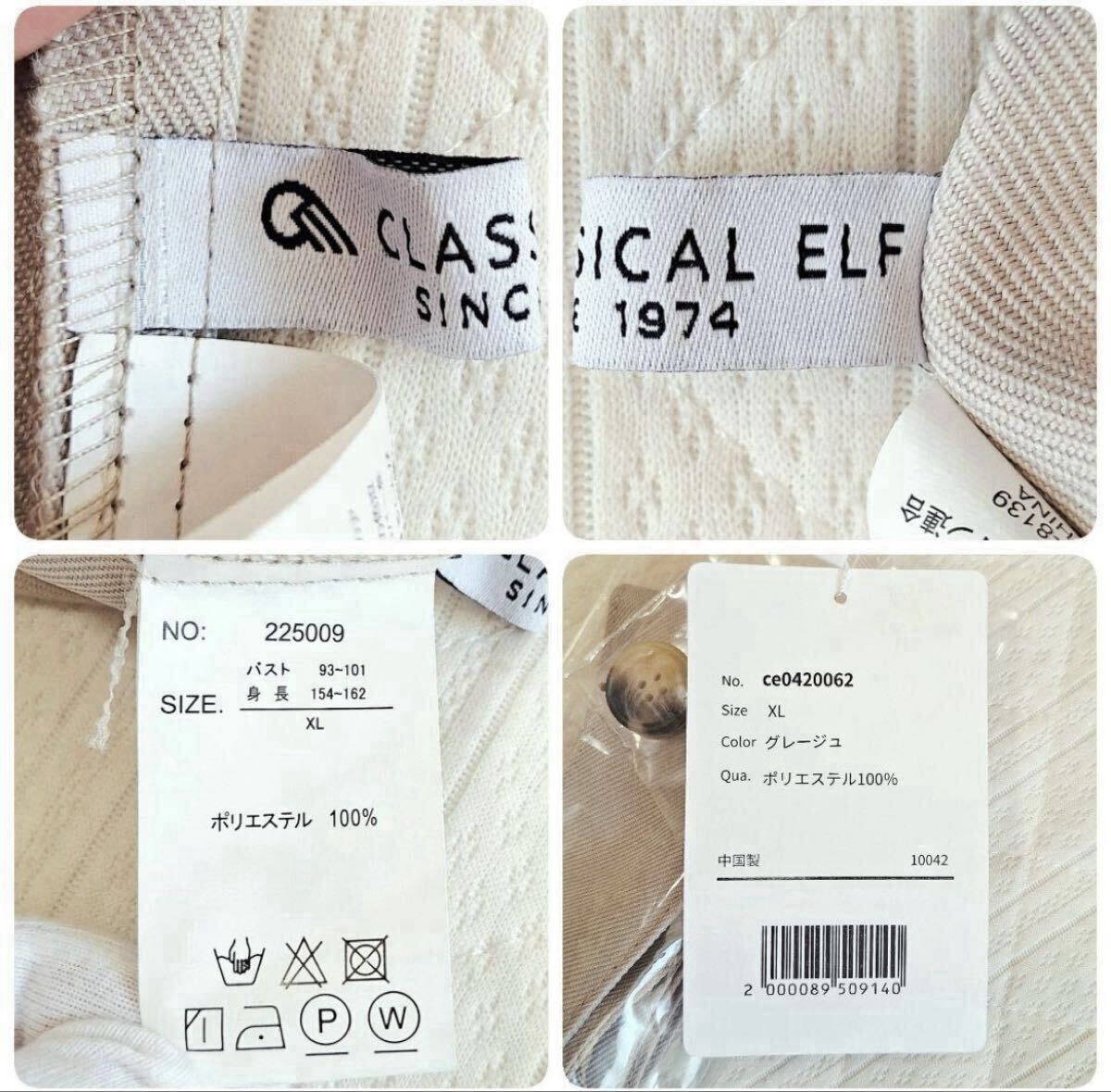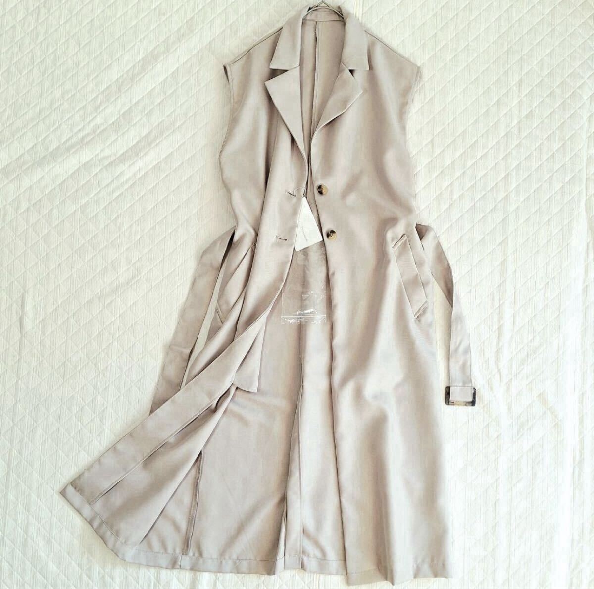Classical Elf クラシカルエルフ グレージュのロングジレ ベルト付き ポケット有り タグ付き XL 採寸表記をご確認下さい