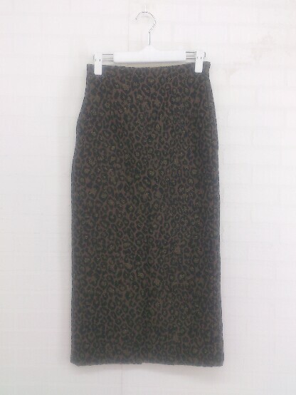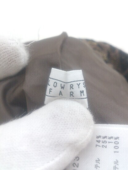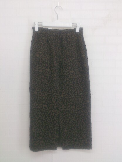 ◇ LOWRYS FARM バックゴム 総柄 スリット ロング ナロー スカート サイズF ダークブラウン ブラック系 レディース E