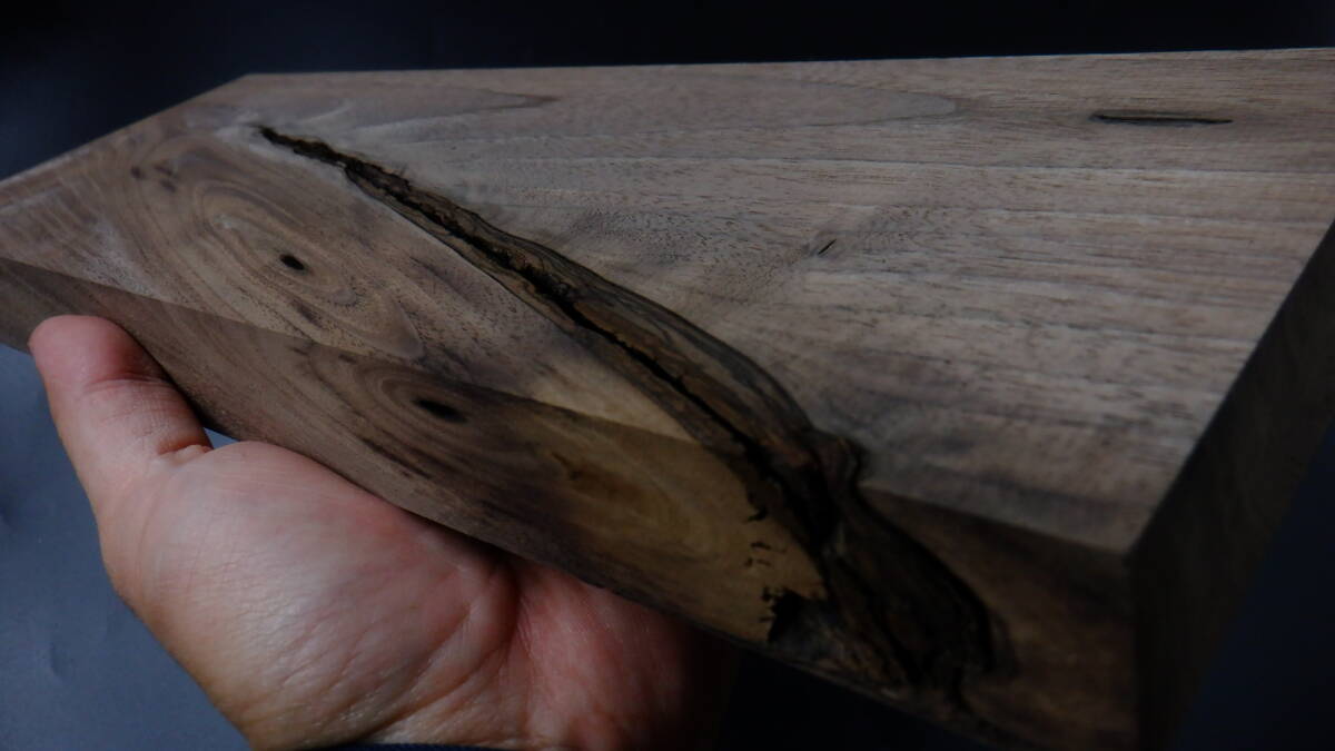 ★入り皮!★ ウォールナット 厚約27mm,幅約105mm,長さ300mm diy 縮杢 ペンブランク ペンターニング 木材 生地 端材 花台 銘木 材木 no17