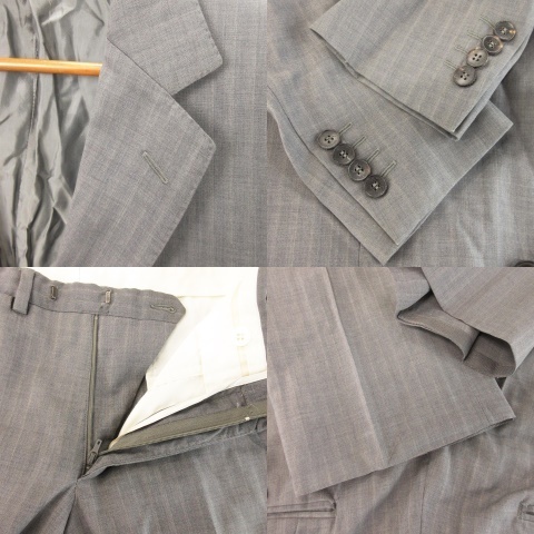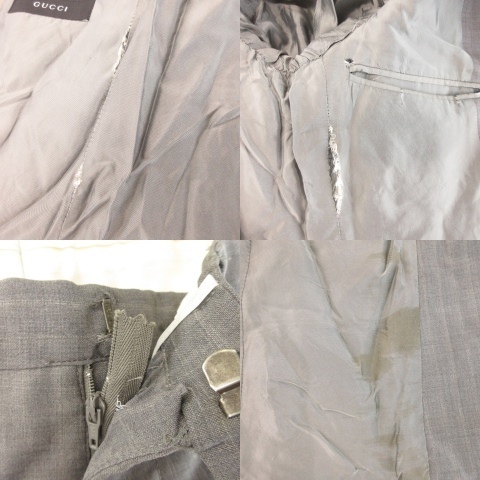 グッチ GUCCI シングルスーツ セットアップ 上下 テーラードジャケット 総裏地 スラックス ウール ストライプ 46R グレー /AH5