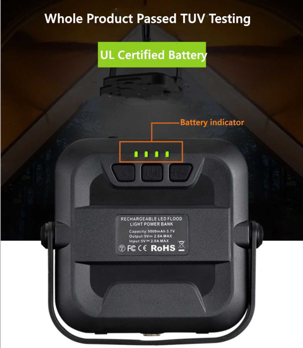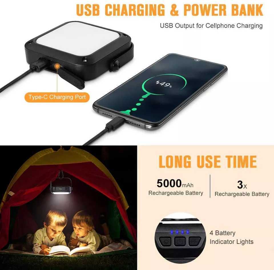 ・5000mAhのバッテリー搭載でポータブル充電器としても使用可能。