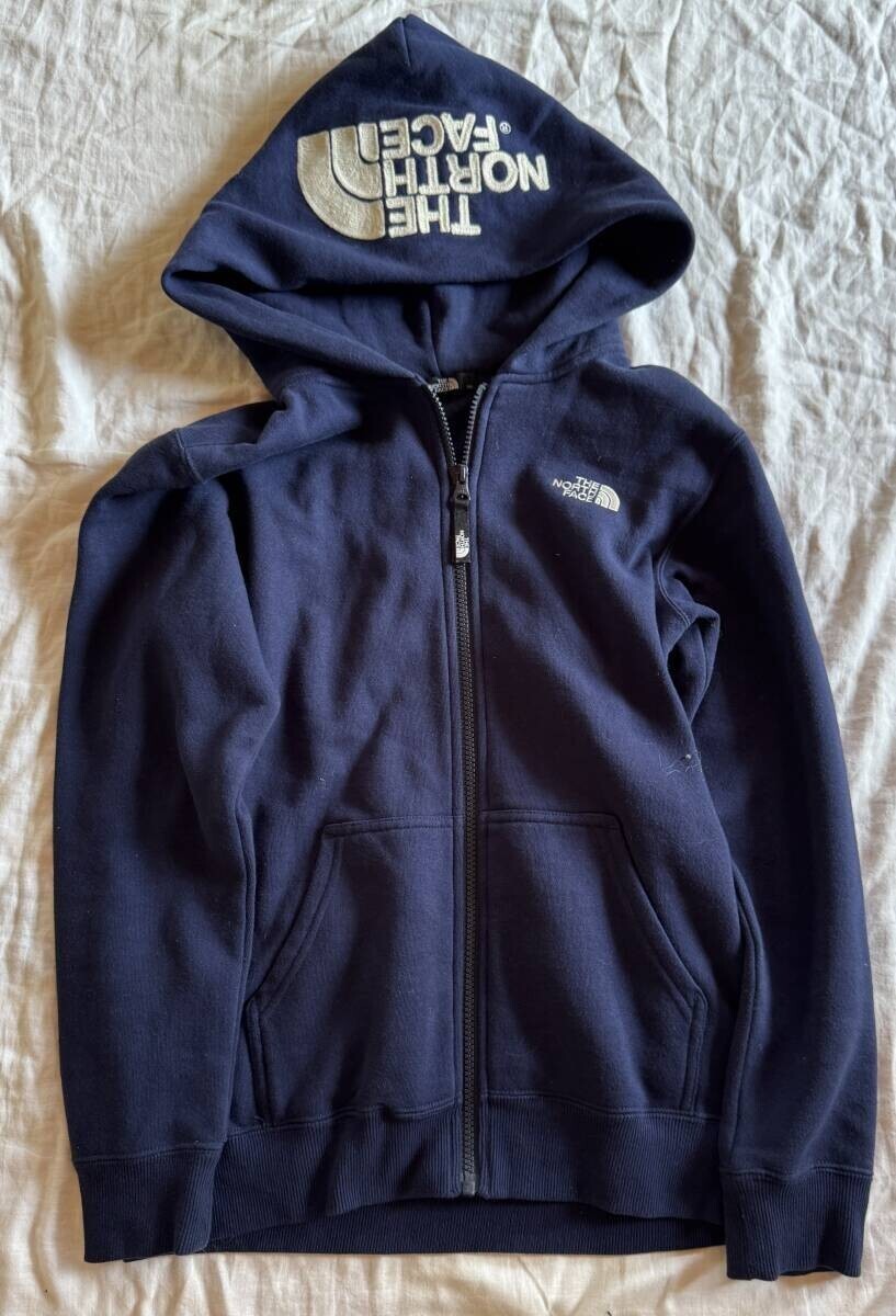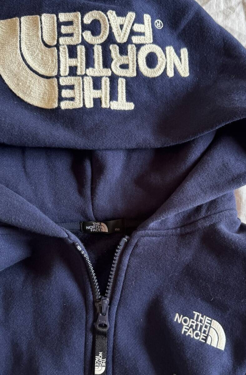 ノースフェイス パーカー 濃紺 ジップアップ 150 シンプル 大きめロゴ 刺繍 高級