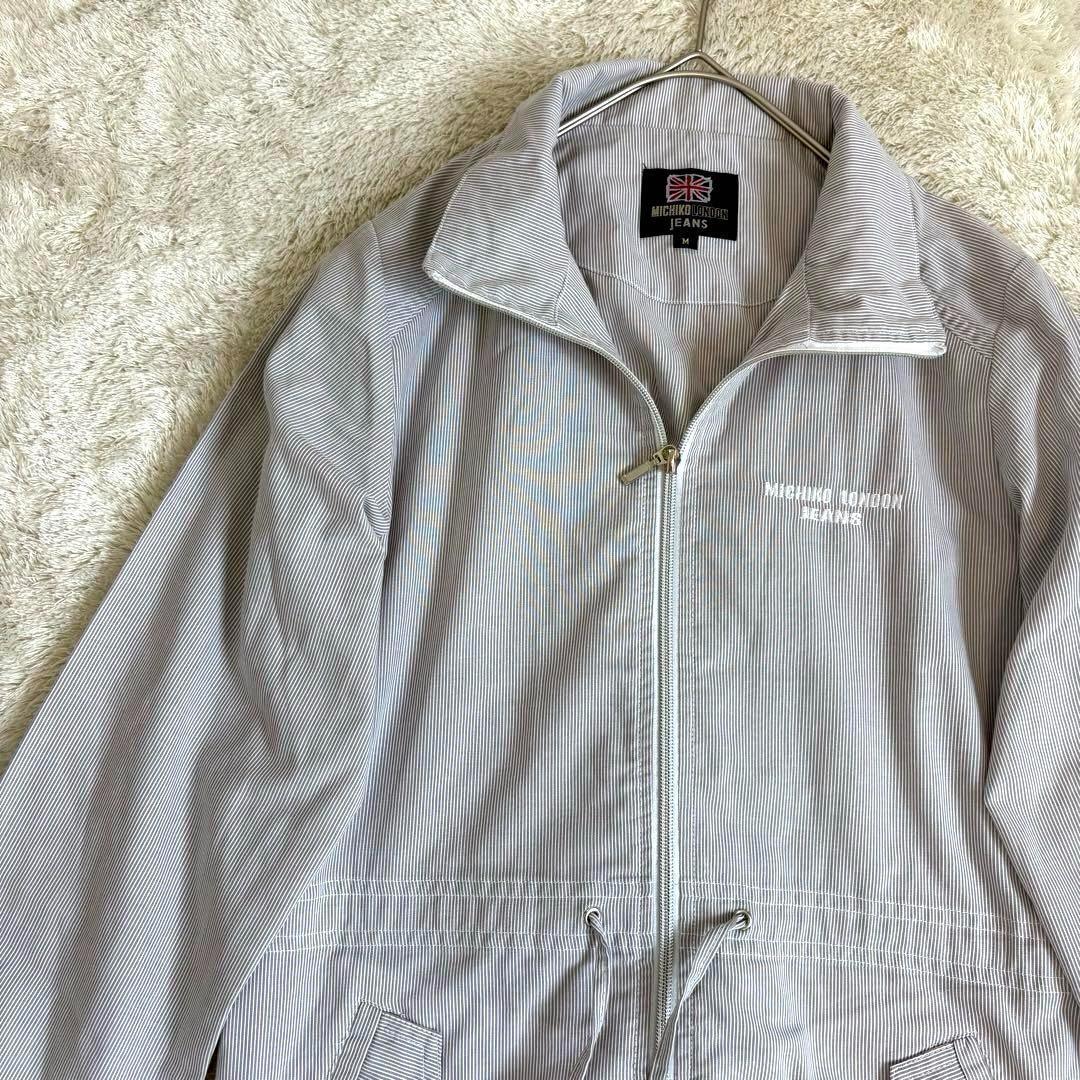 【ミチコロンドン】ジップアップジャケット シャツ ストライプ グレー M 13B2EF
