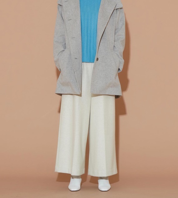 サイトより...希少なスーパー140's(カシミヤと同等クラスの16.5μ)の非常に繊維の細いウールをミルド加工したメルトン素材。