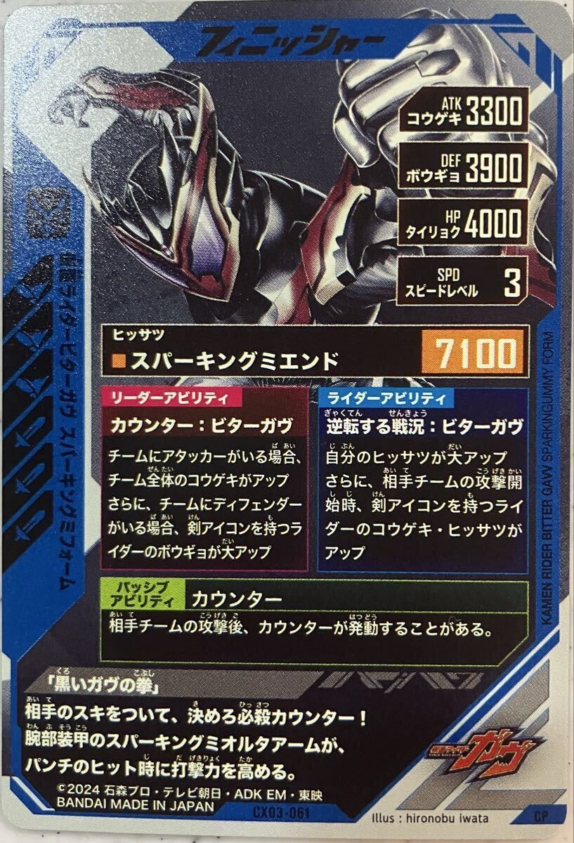 ガンバレジェンズ クロマティックX3弾キャンペーンのCX03-061 仮面ライダービターガヴ スパーキングミエンドです。