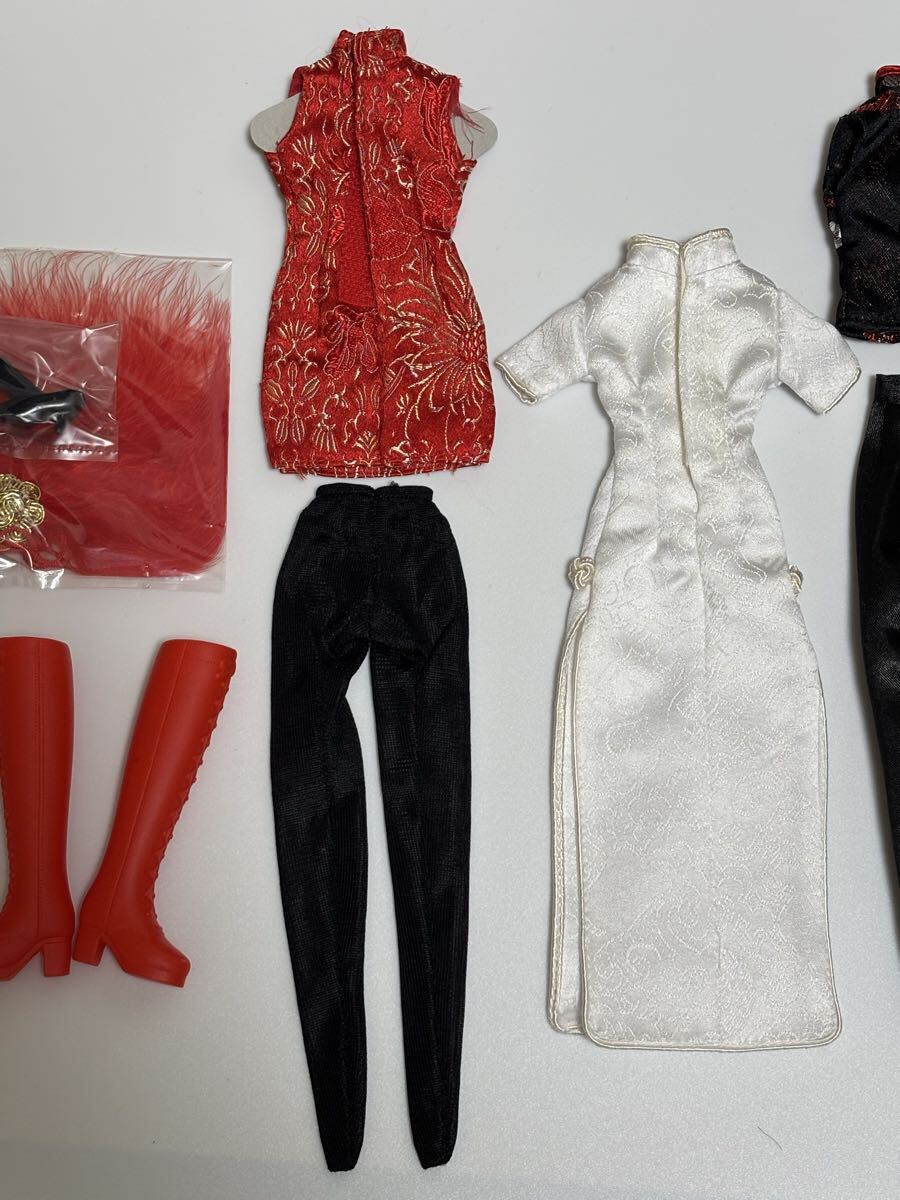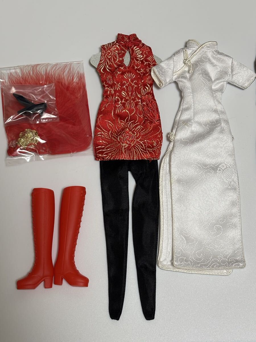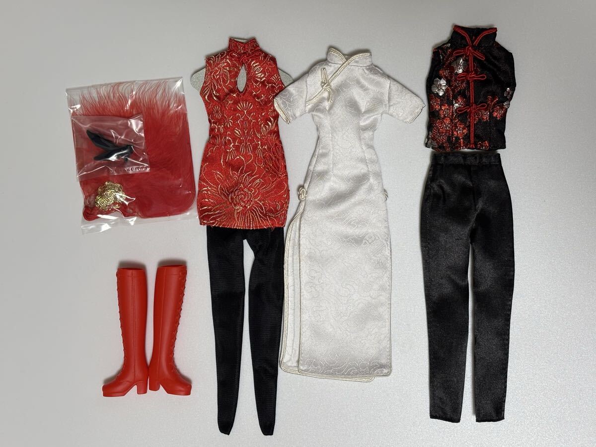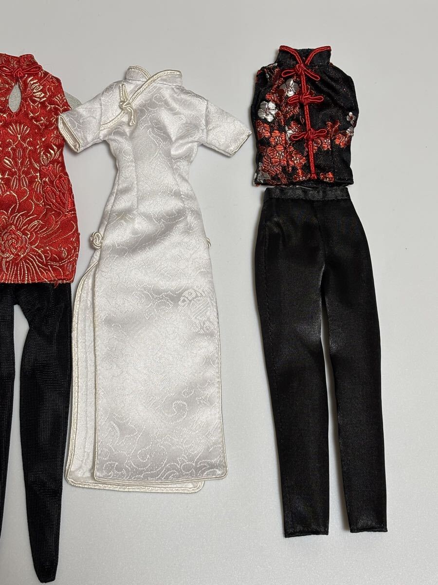 ジェニーコスチュームコレクションのもの2着(赤と黒)、不明品の白いチャイナ服の3点セットです。