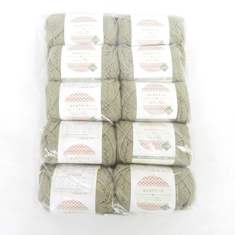 | 毛糸 はんなりウール 10玉セット 1玉約40g 約77m 日本製 カーキ系 ごしょう産業 未使用品 |