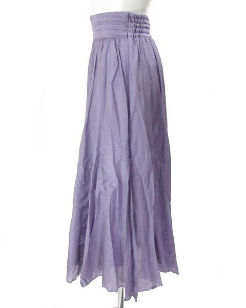 | 落ち着きのあるパープルのロングスカート。薄手の柔らかく肌触りの良い生地。シンプルなデザインで大人女子の着こなしが楽しめます。春先から秋口までお使い頂けます。 |