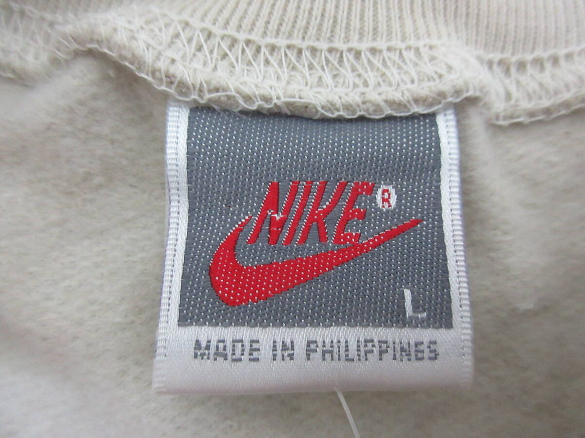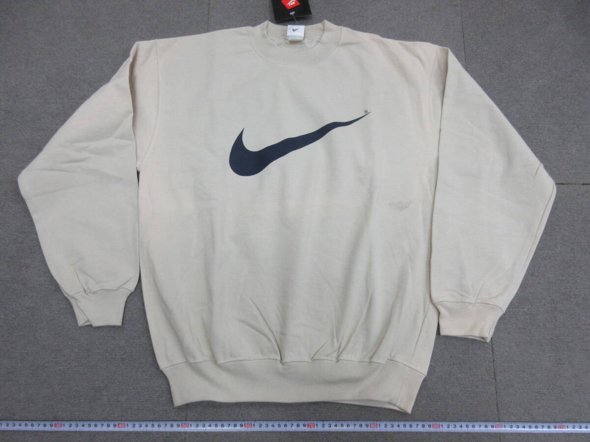 M【12-8】再▼27 未使用 タグ付き 銀タグ ビンテージ NIKE ナイキ スウェット トレーナー Lサイズ 裏起毛 ロゴ ベージュ【5-10】(11-18⑨)