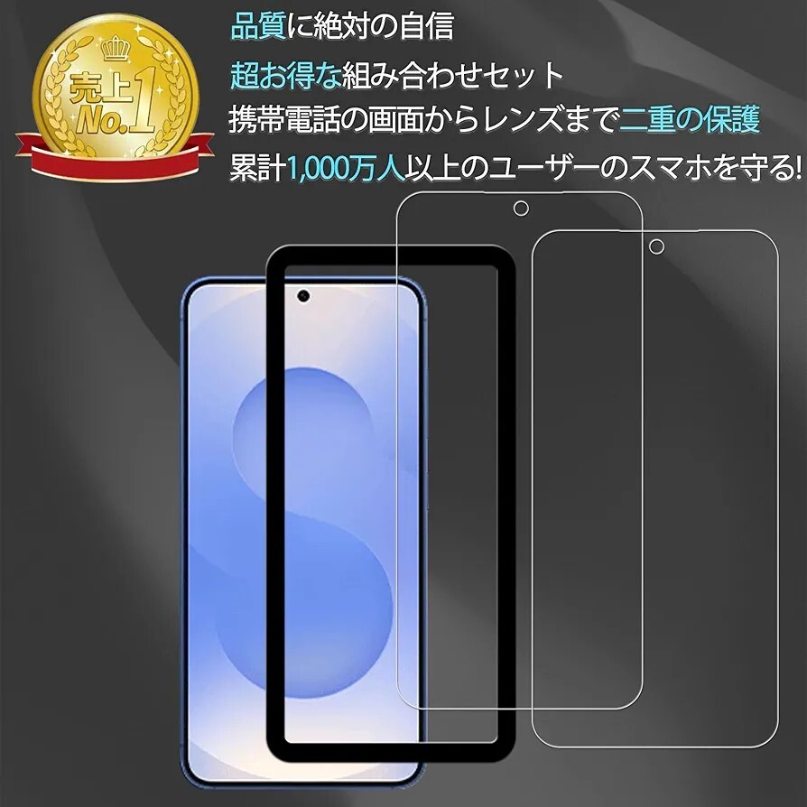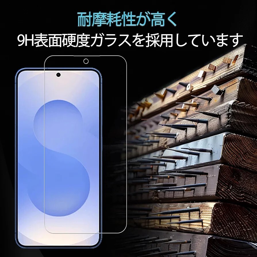 【対応機種】Galaxy S25 5G / Galaxy S24 5G SCG25 SC-51E ガラスフィルム2枚 。【注意】この電話の画面の端は湾曲しているため、保護フィルムのサイズが丁度良い場合、しっかりと貼り付けられず、白いエッジやシェルとの干渉などの問題があるため、保護フィルムは画面よりも小さいです。