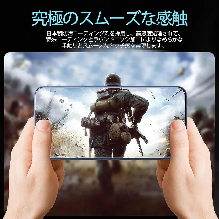 【指紋防止、高感度タッチ】ガラスフィルムには撥油コーティングが施されており、指紋や汚れなどに強くなめらかな操作感を実現、付着した汚れなどは簡単に拭きとれます。こちらは高耐久撥油コーティングが施され、つるつるな滑り感を実現!ゲームしても渋くなし!