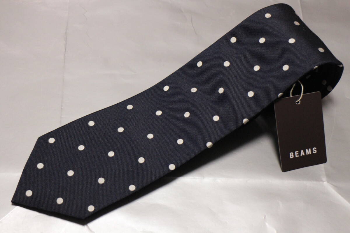 ビームス新品ネクタイ超艶美麗ネイビー*シルバードット極上ツイル織ハンドメイド大人気柄