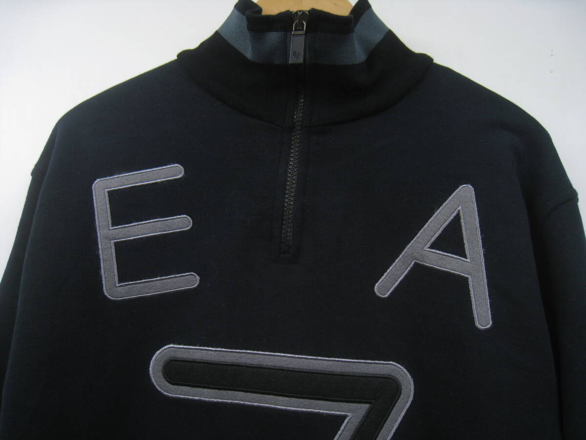 イタリア製 EA7 EMPORIO ARMANI エンポリオアルマーニ ハーフジップ スウェット トレーナー 刺繍ロゴ 紺 ネイビー サイズS