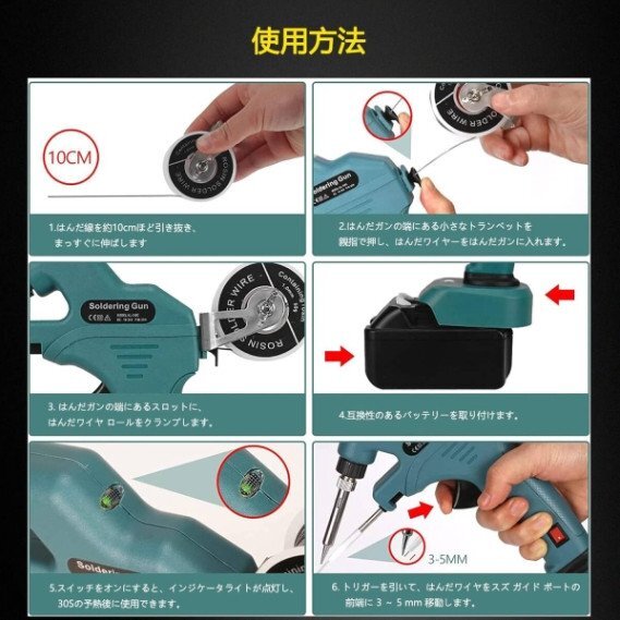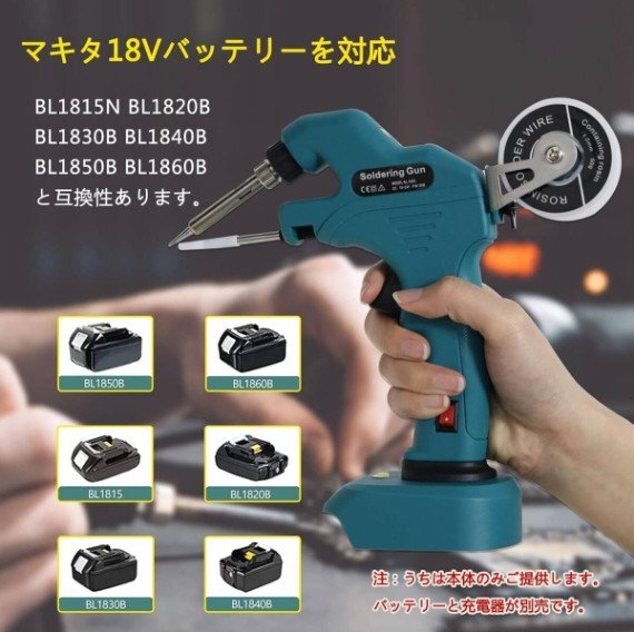 • 【マキタ18Vバッテリーを対応】:この充電式はんだこては、18Vマキタリチウムイオンバッテリー 互換性があります。対応電池の種類BL1815N、BL1820B、BL1830B、BL1840B、BL1850B、BL1860B 。ご注意:本体のみ販売ですが、充電器やバッテリー別売です。