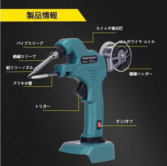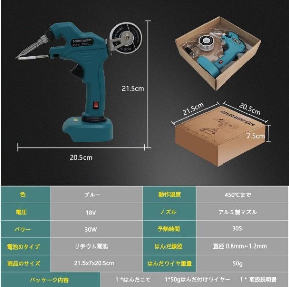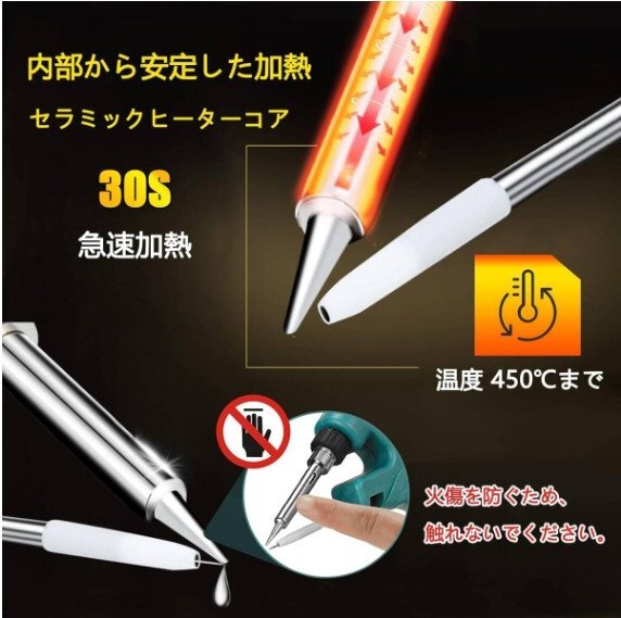 はんだごて 充電式 コードレス ハンダゴテセット マキタ18Vバッテリーを対応 30W 溶接 急速加熱 450°Cまでの温度電気ハンダゴテ 本体のみ